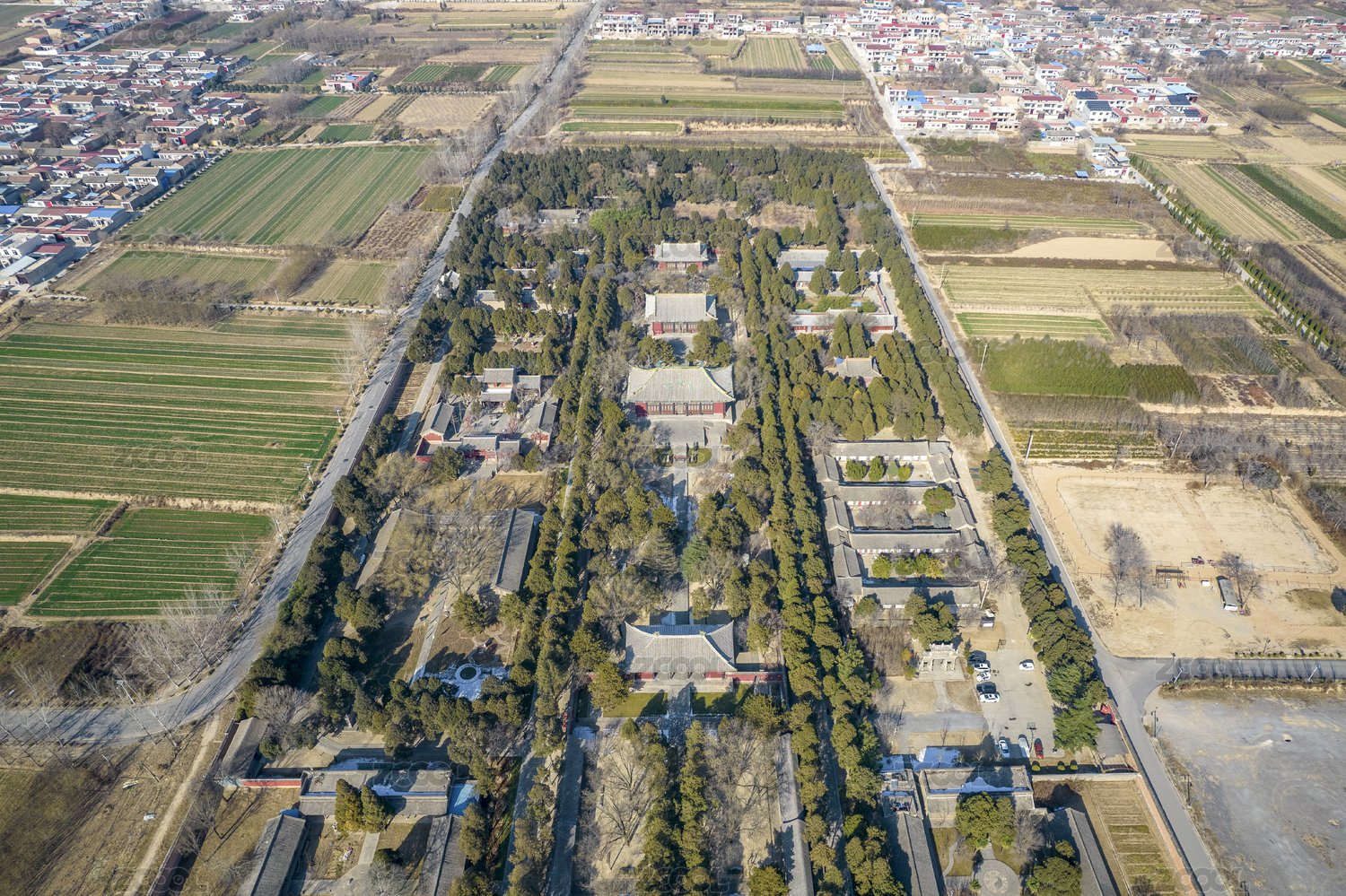 中国山东省济宁市曲阜市周公庙鲁国遗址航拍