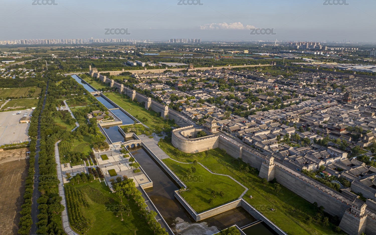 中国山西平遥古城建筑和古城墙航拍
