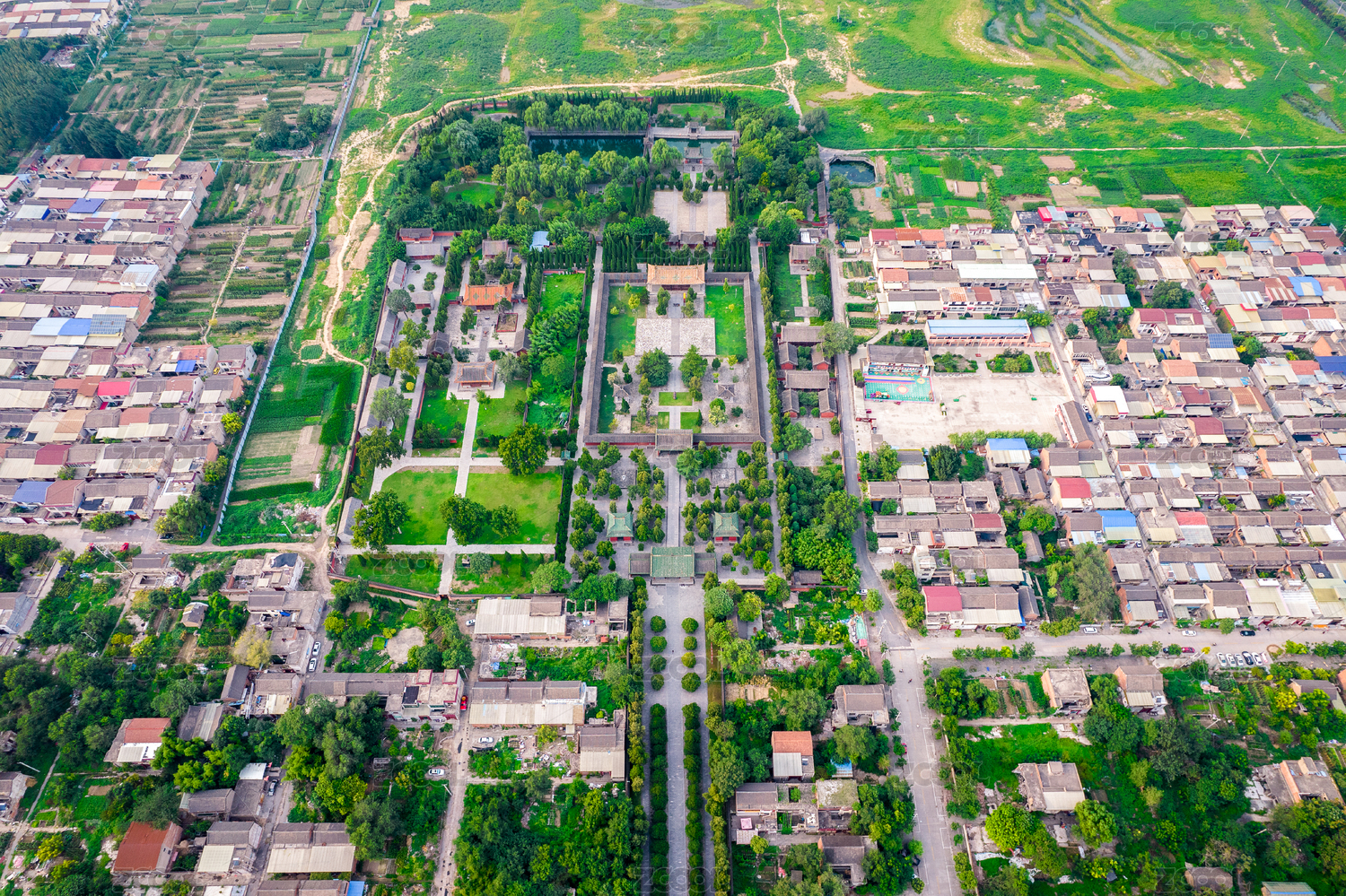 中国山西省临汾市尧都区牛王庙航拍