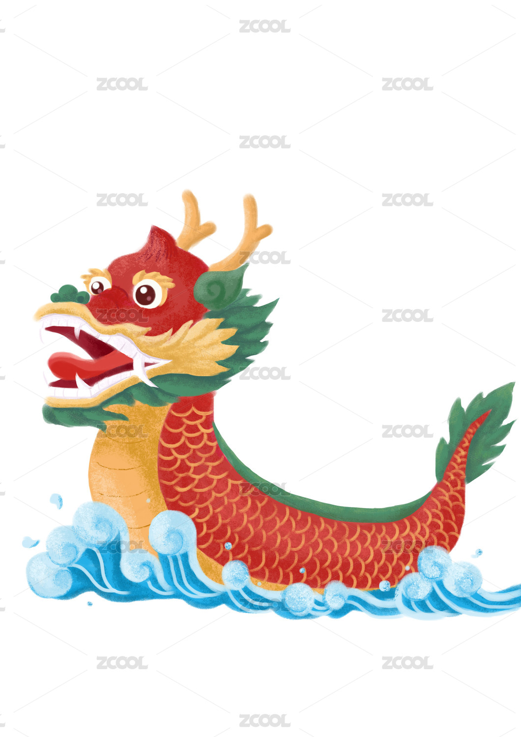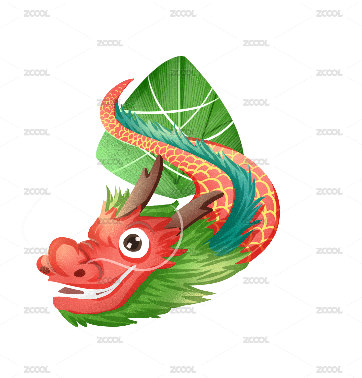 小清新中国风红色龙与粽子插画元素