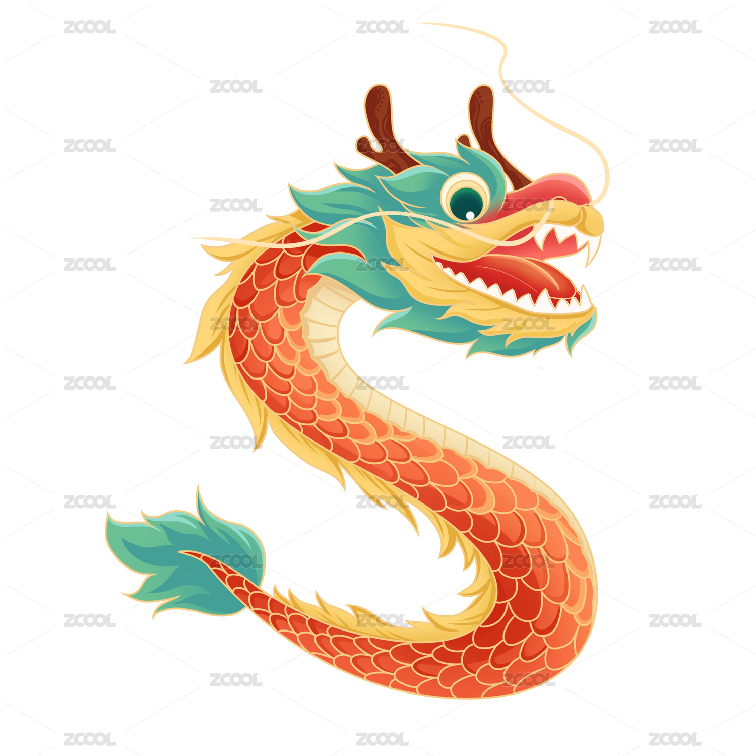 小清新中国风红色龙插画元素