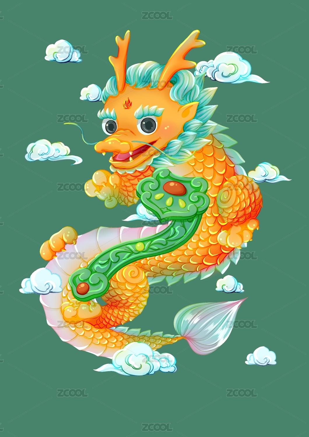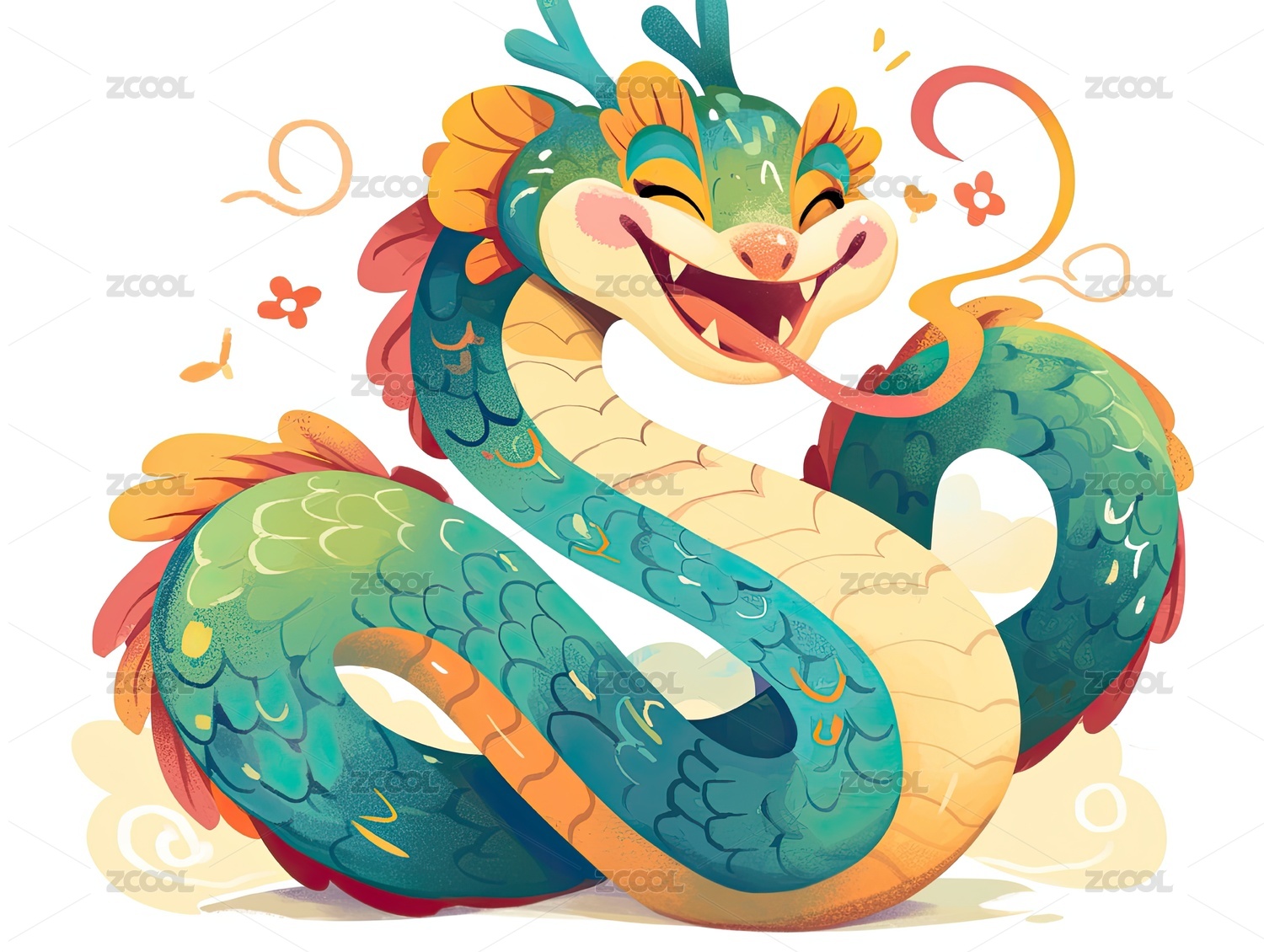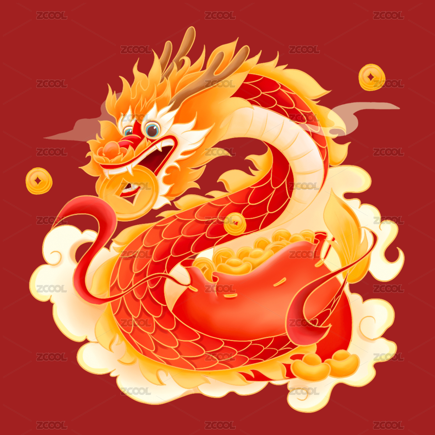 新春龙年吉祥主题纯色背景插画