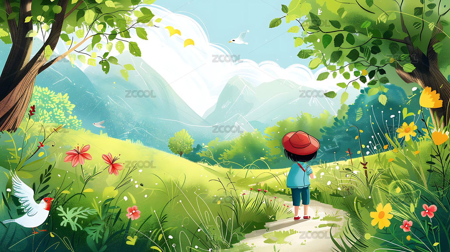 春季郊游儿童插画
