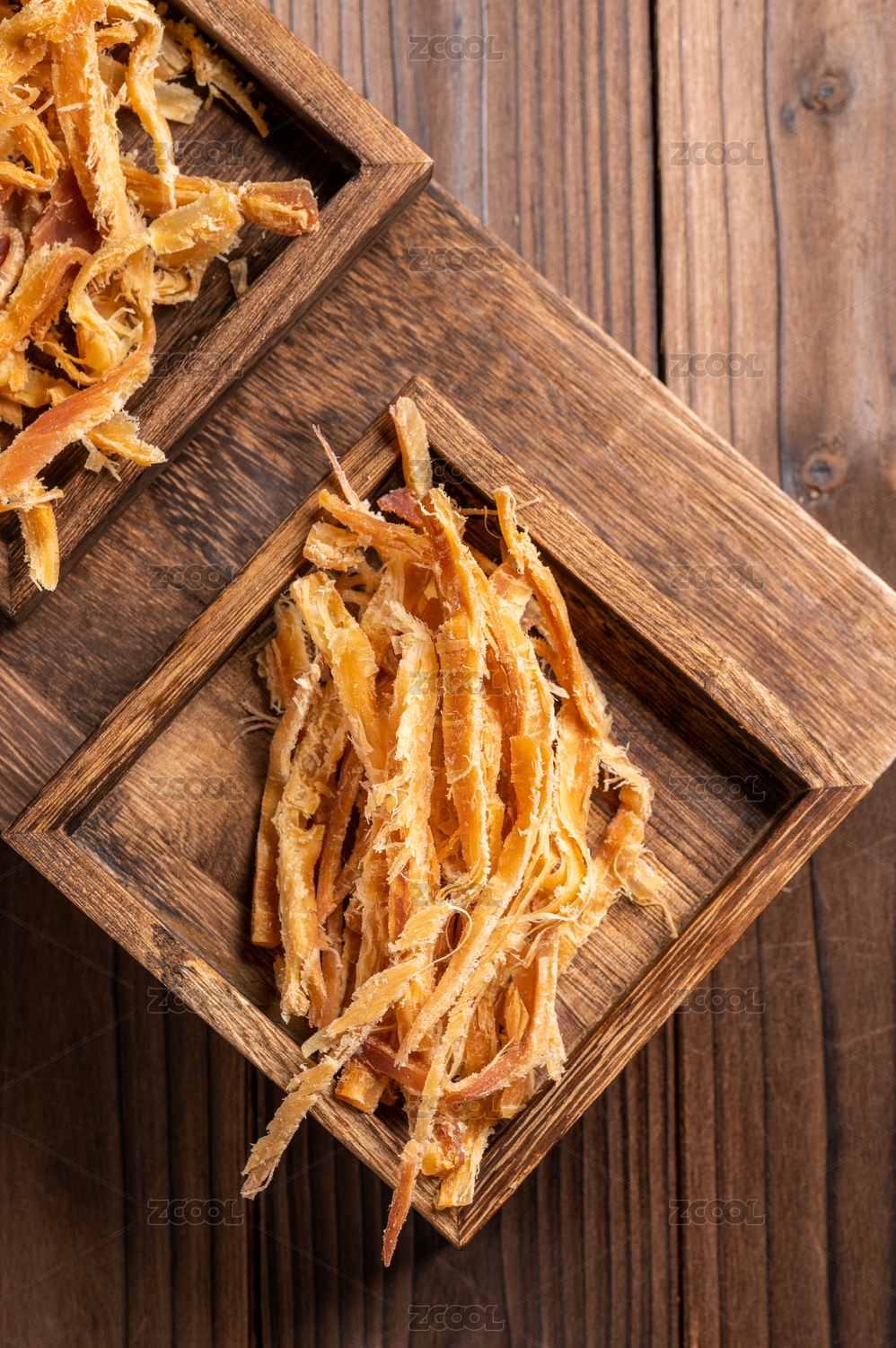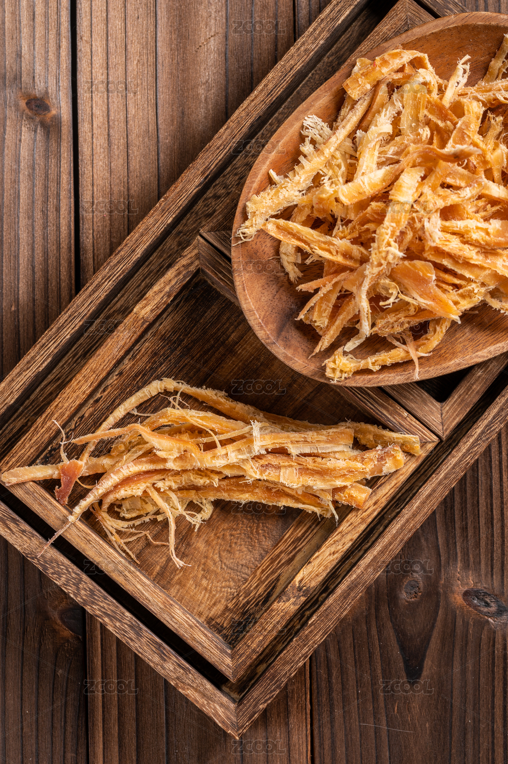 鱿鱼丝,零食,小吃,美食,美味,海鲜制品,木桌,木纹,木质餐具