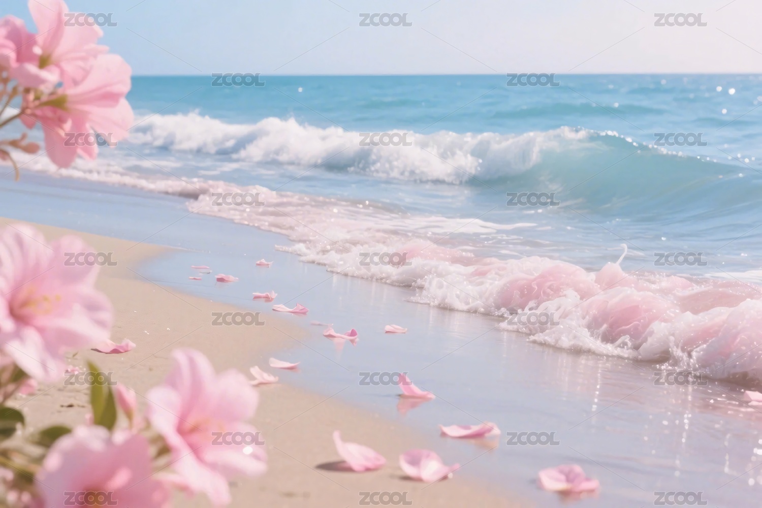 海滩,沙滩,海洋,海浪,水,粉色,花朵,夏日,阳光,度假