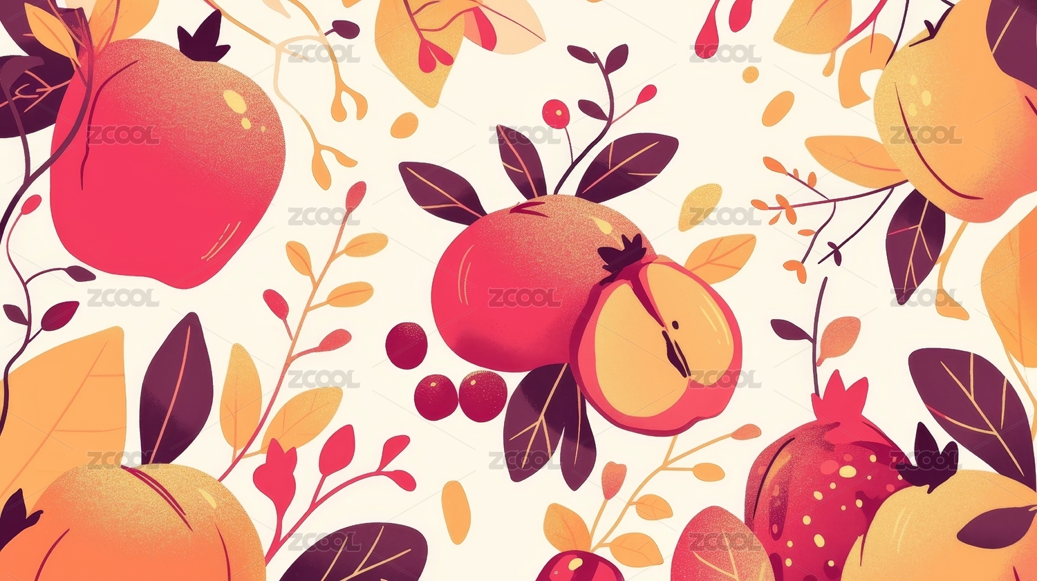 水果,手机壳,卡通,背景,绿色,红色,橙色,插画