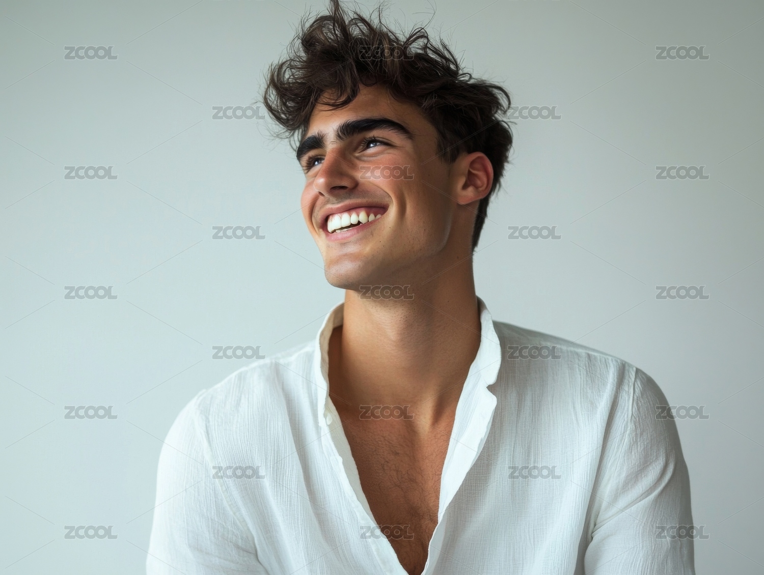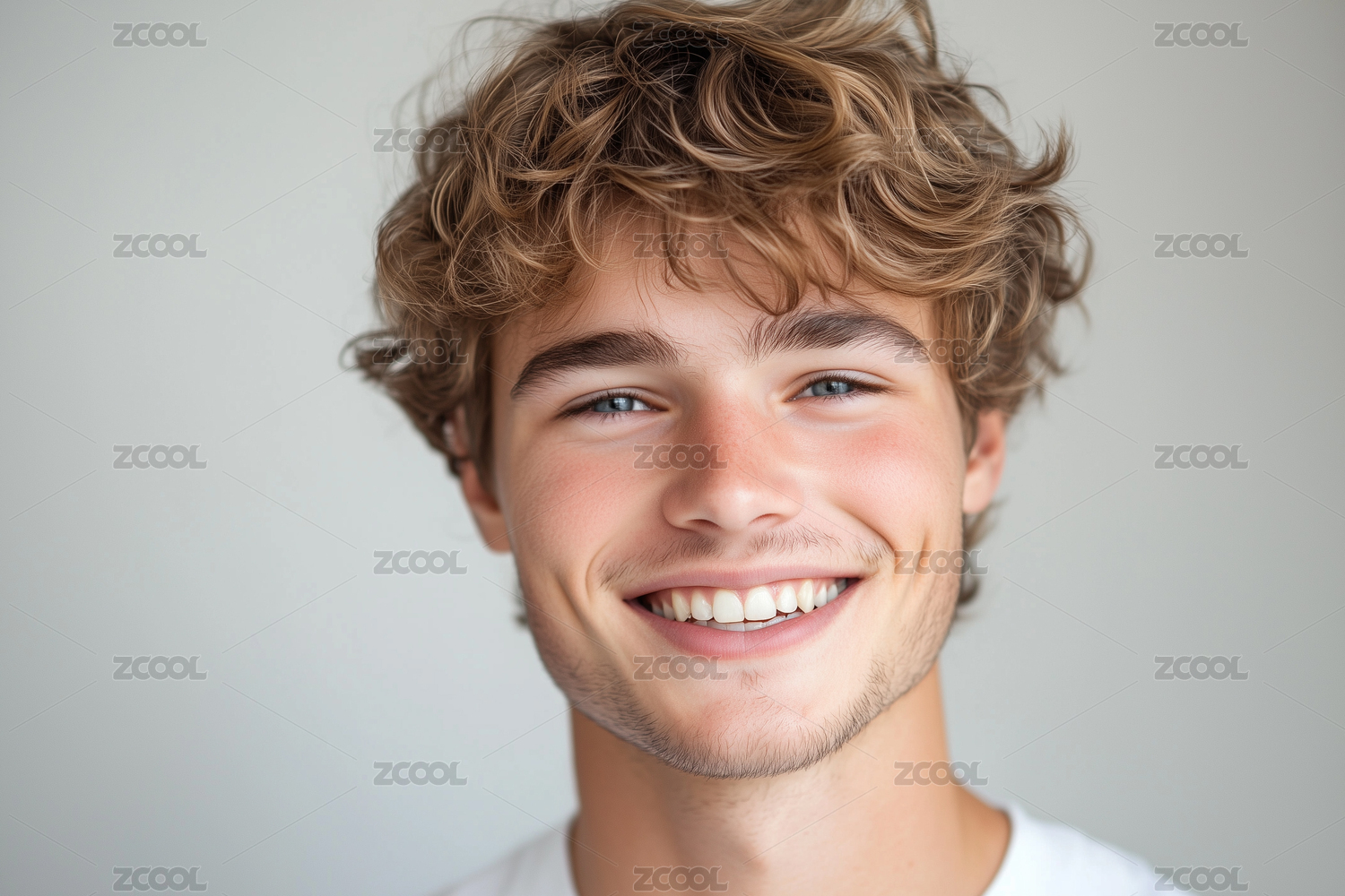 笑容灿烂的卷发年轻男子