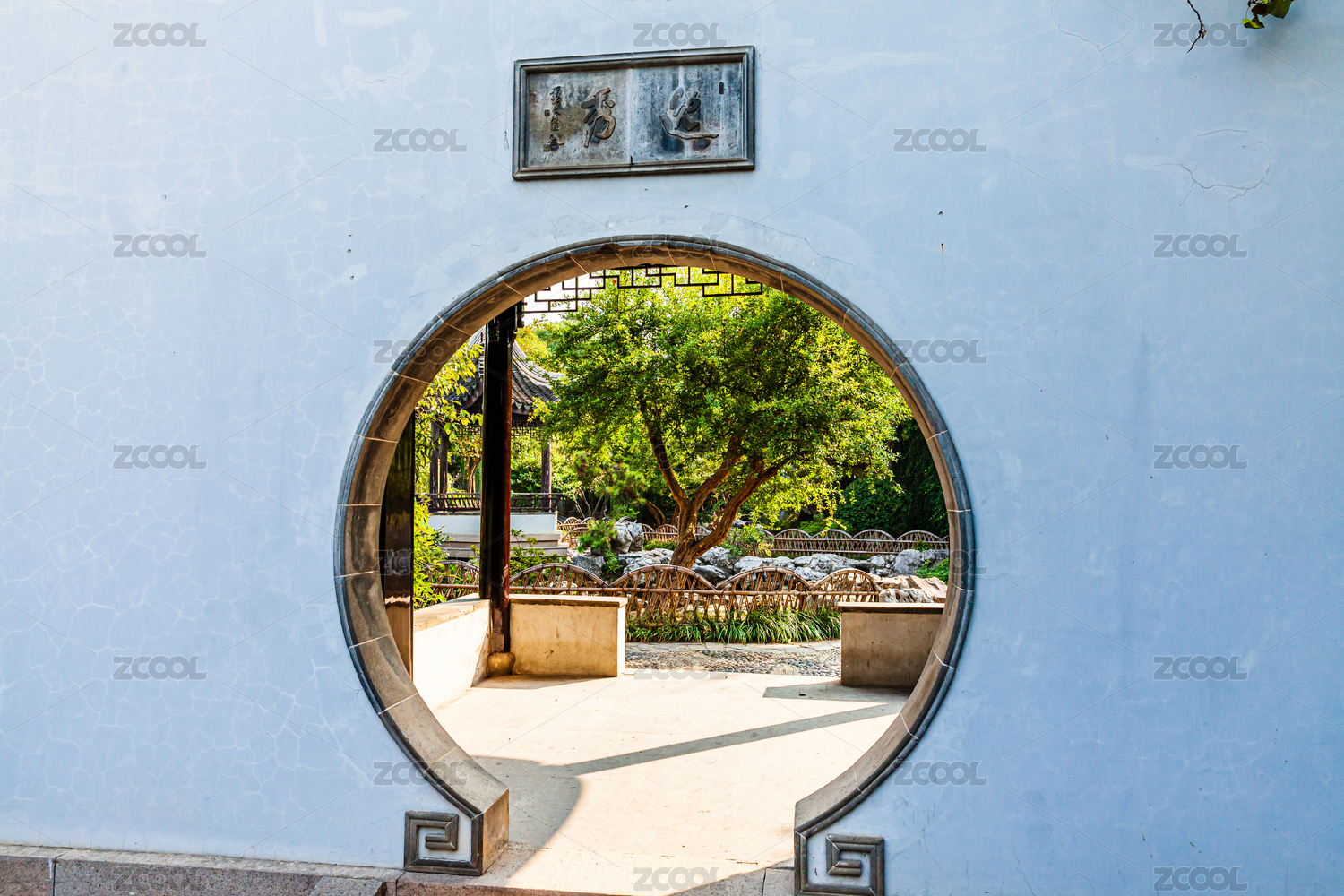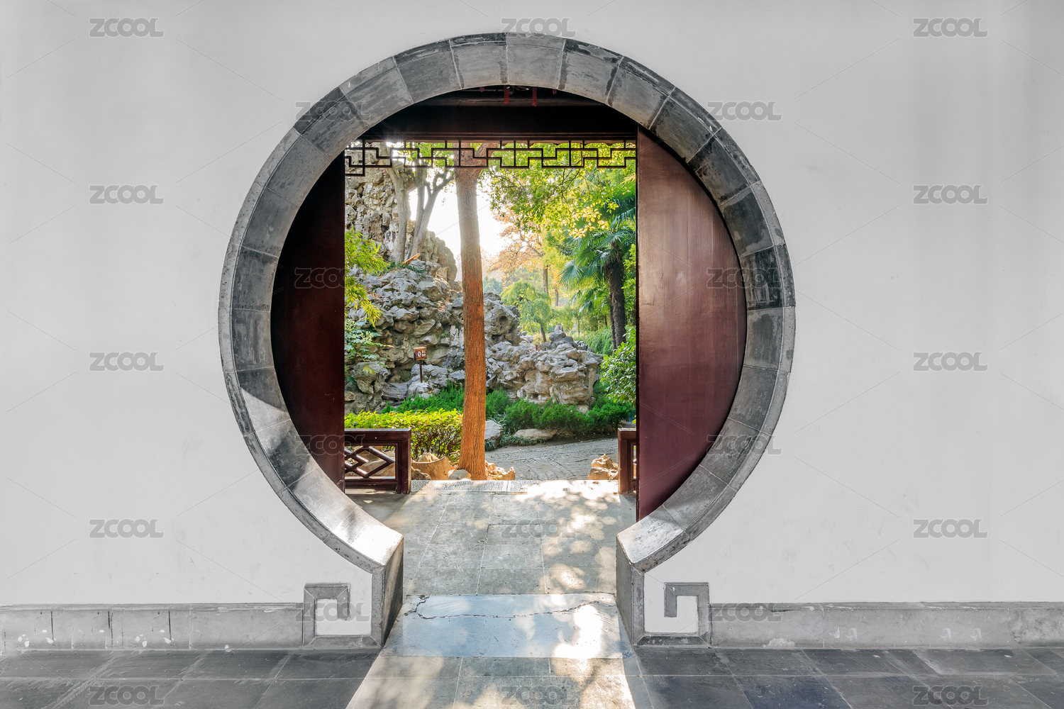 中国山东省济南市趵突泉公园内的园林月门建筑