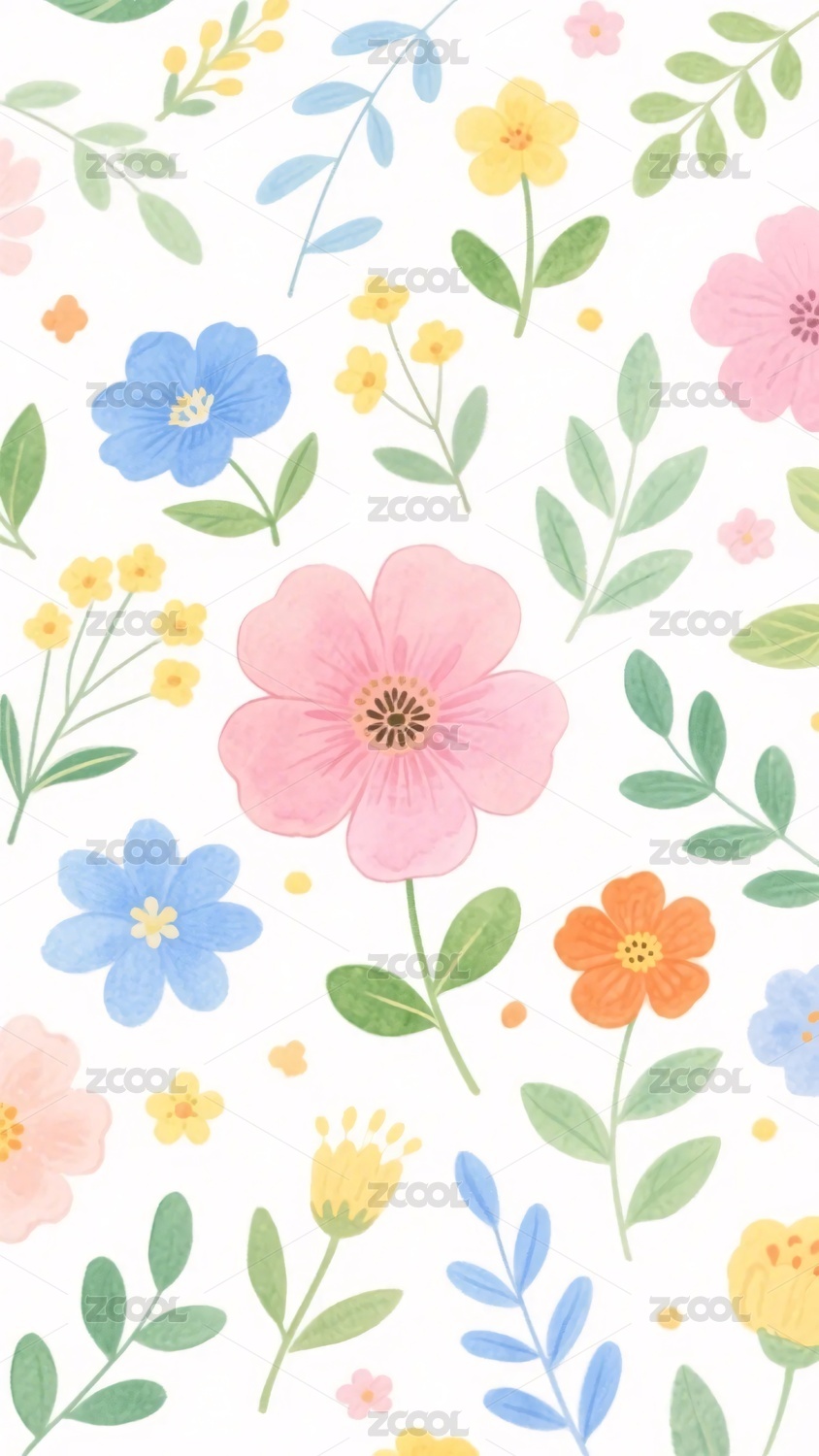 花草,壁纸,印花,家纺,手机壳,扁平,插画,贴纸,小清新,水彩