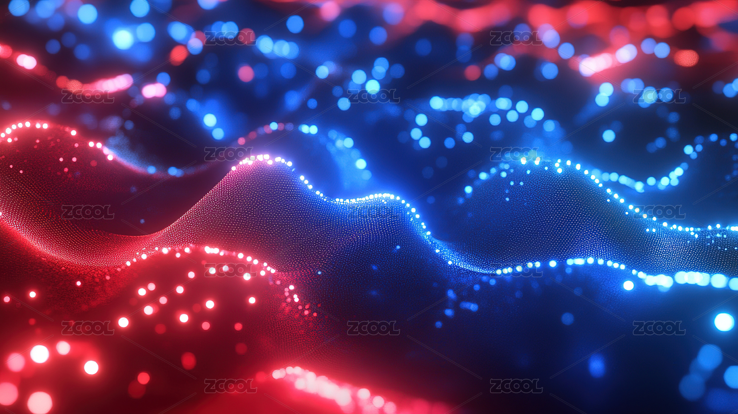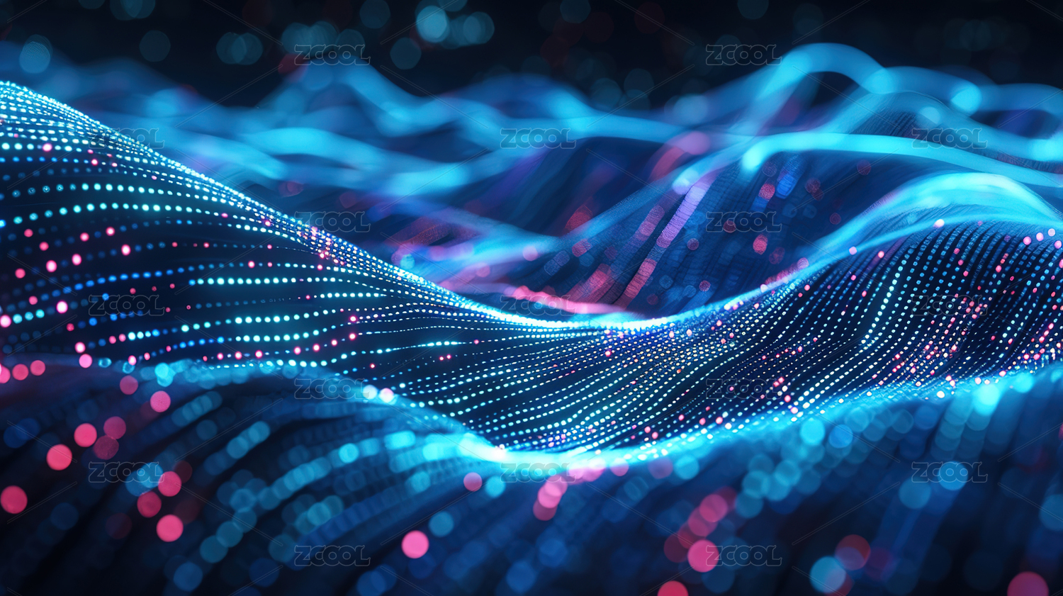 3D渲染科技背景抽象波浪曲线粒子艺术插画