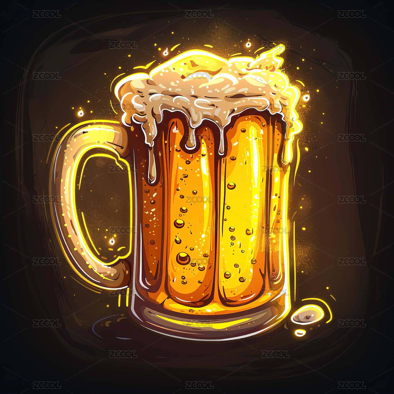 一杯冒着泡沫的啤酒夏季凉爽啤酒节插画