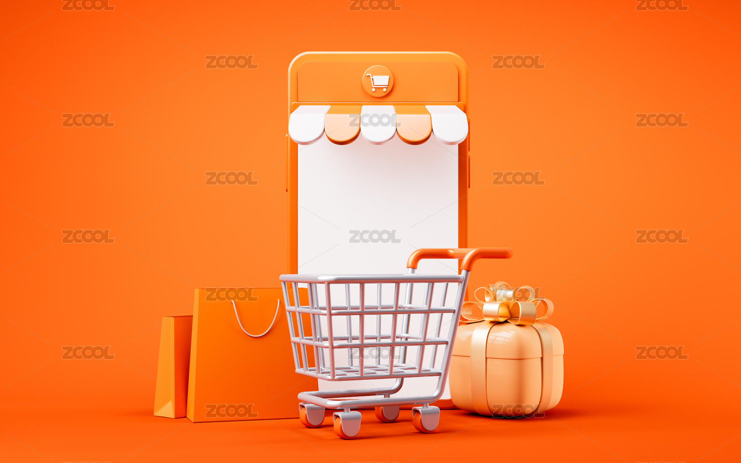 3D卡通橙色购物车