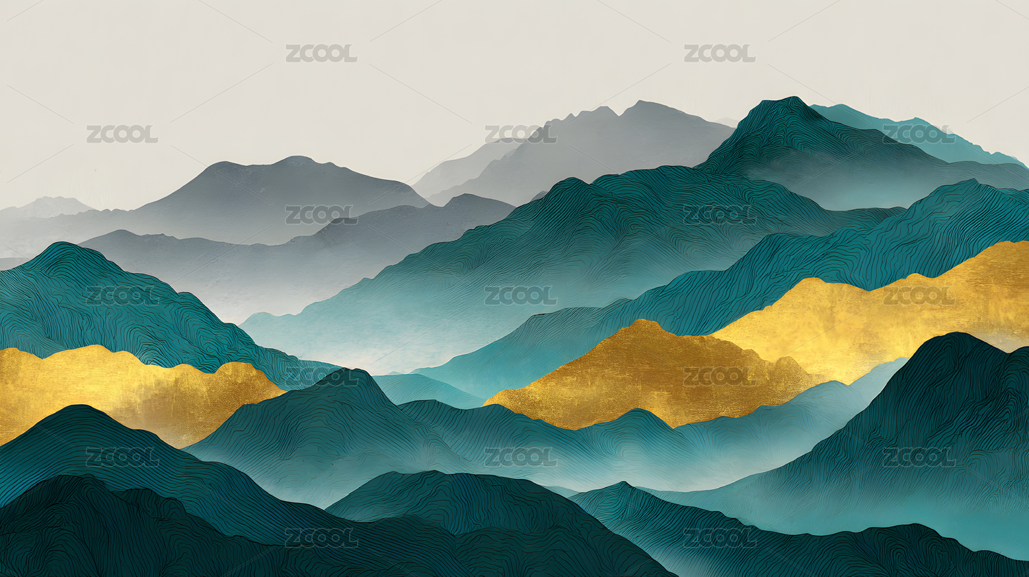 青绿山水鎏金插画