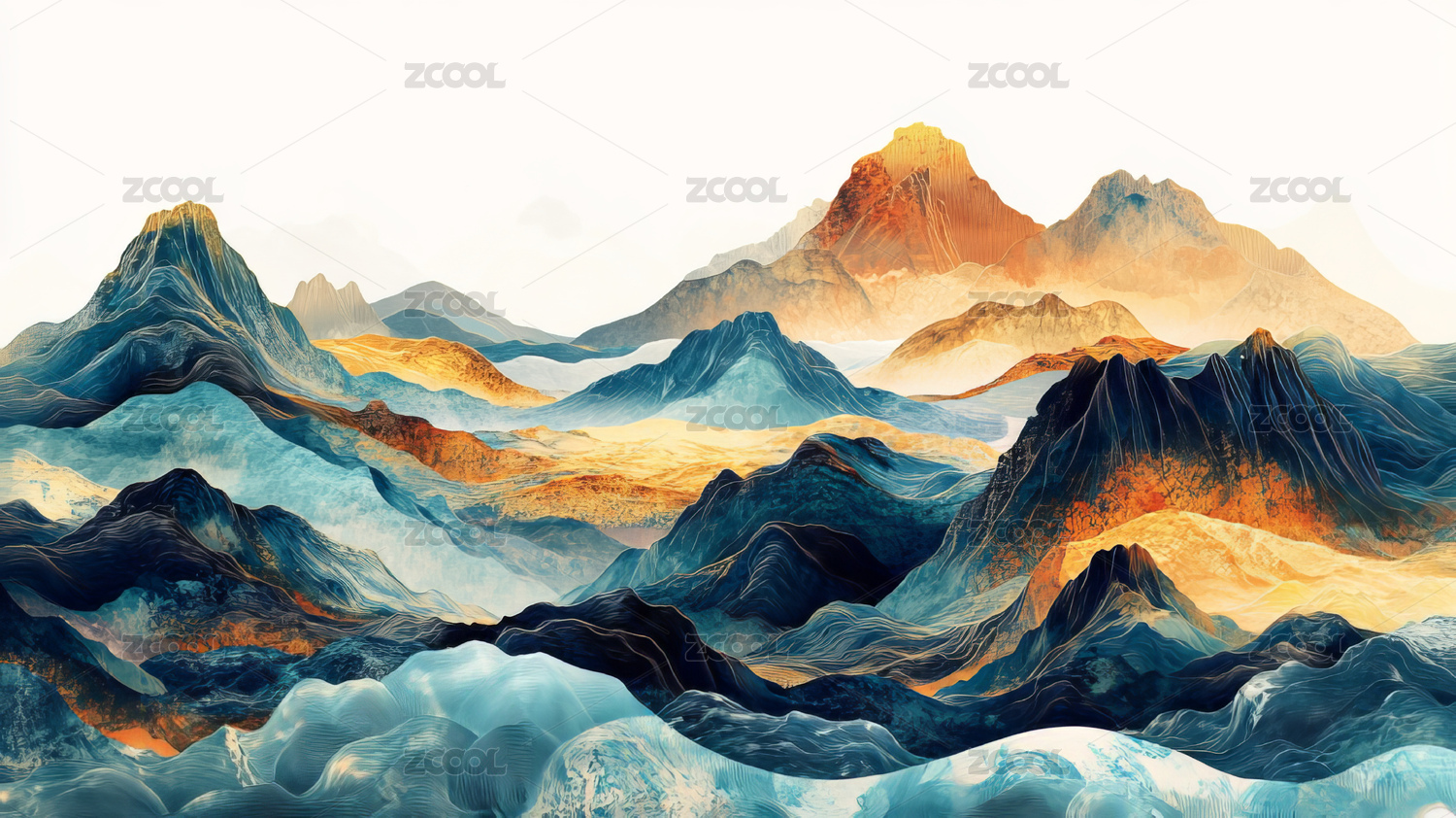 金色山脉水墨画