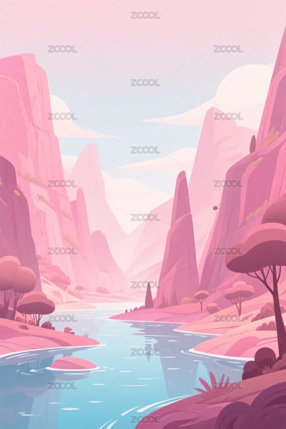 梦幻峡谷山水插画