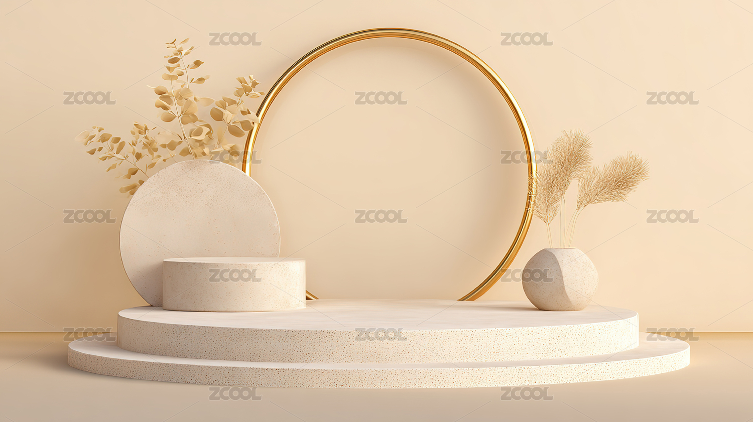 简约白色展台与金色圆环装饰