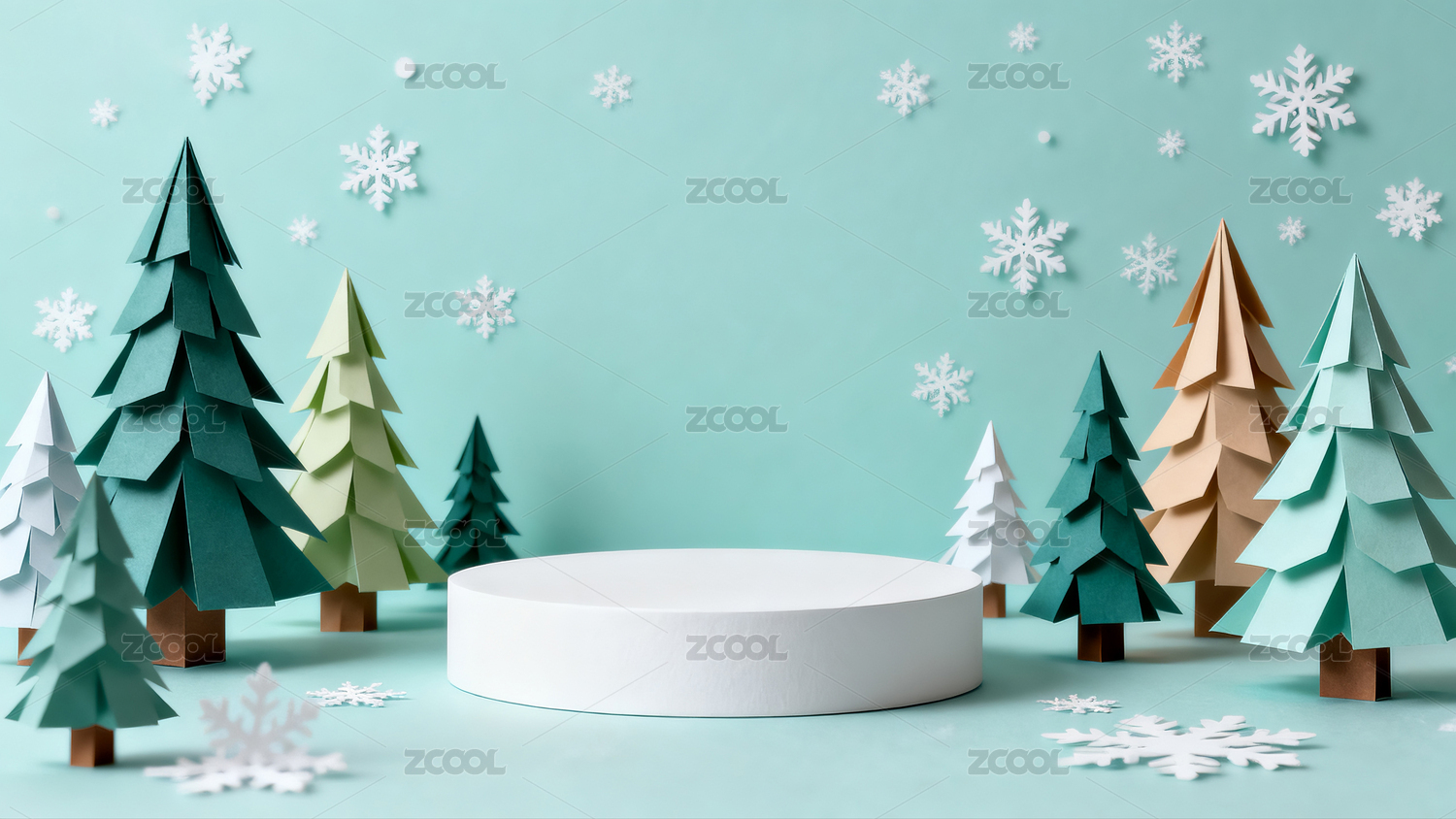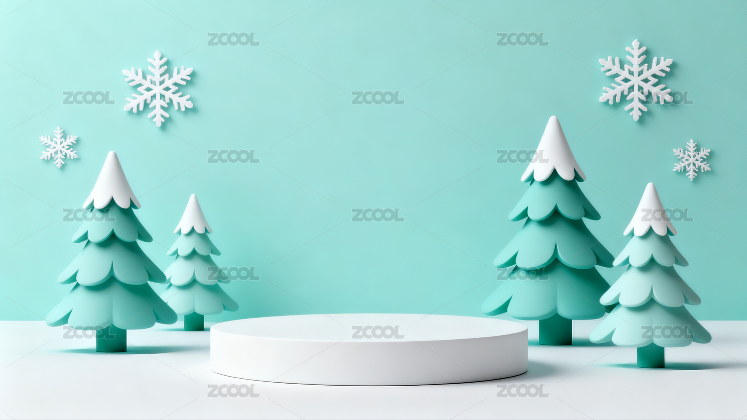 淡蓝色冰雪元素构成的电商产品展示台背景
