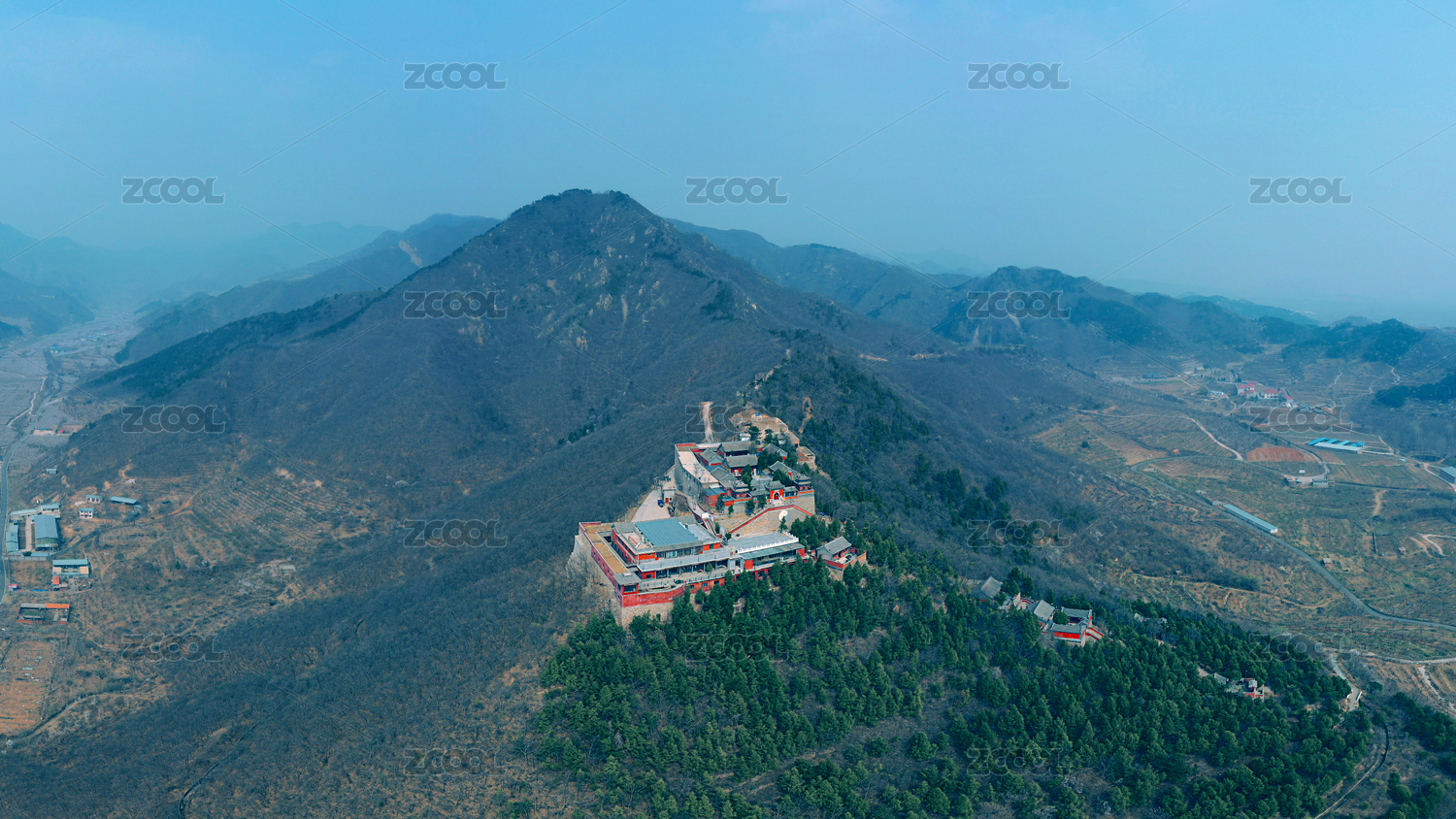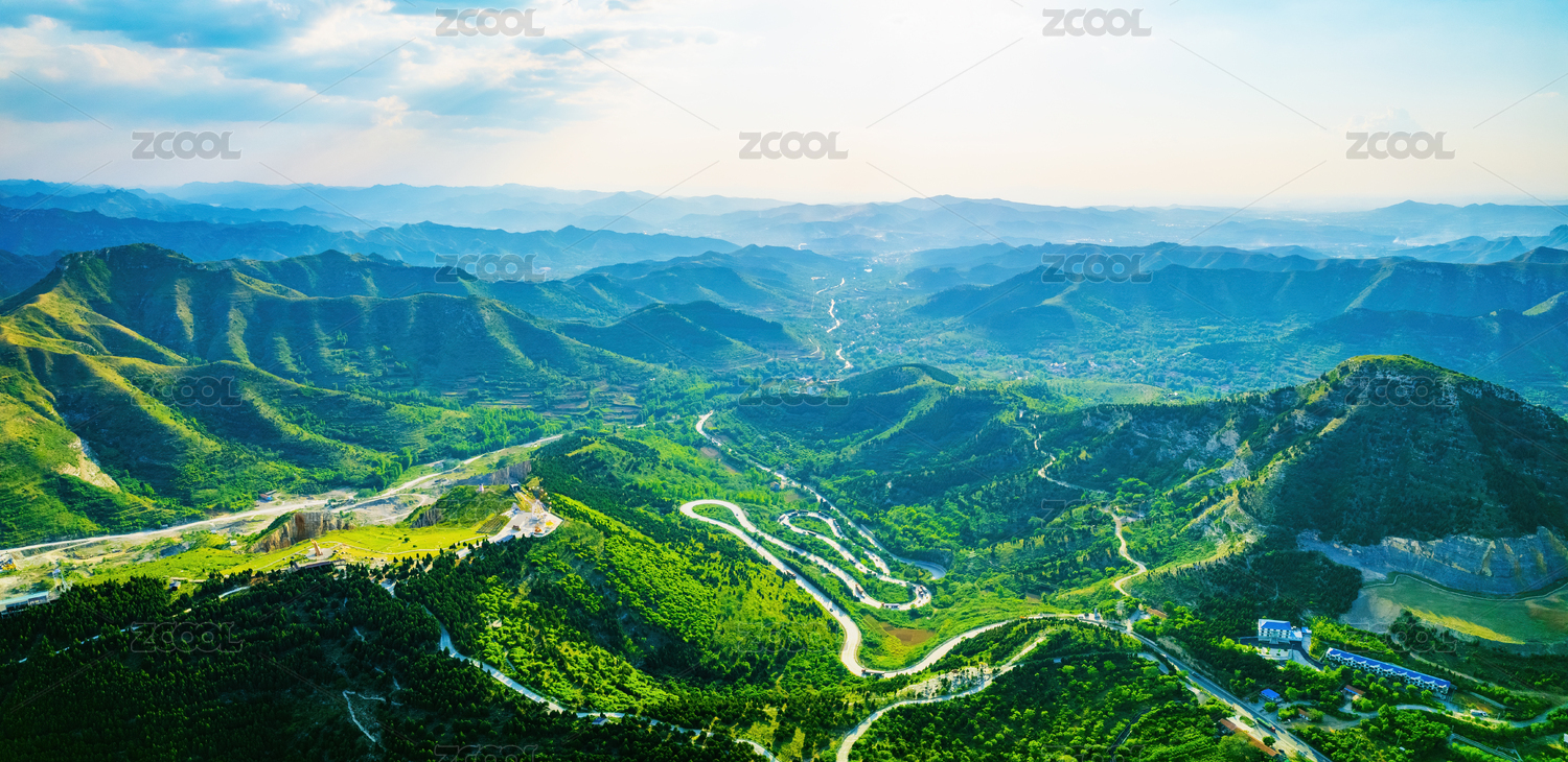 中国北京房山区石经山周边山峦起伏