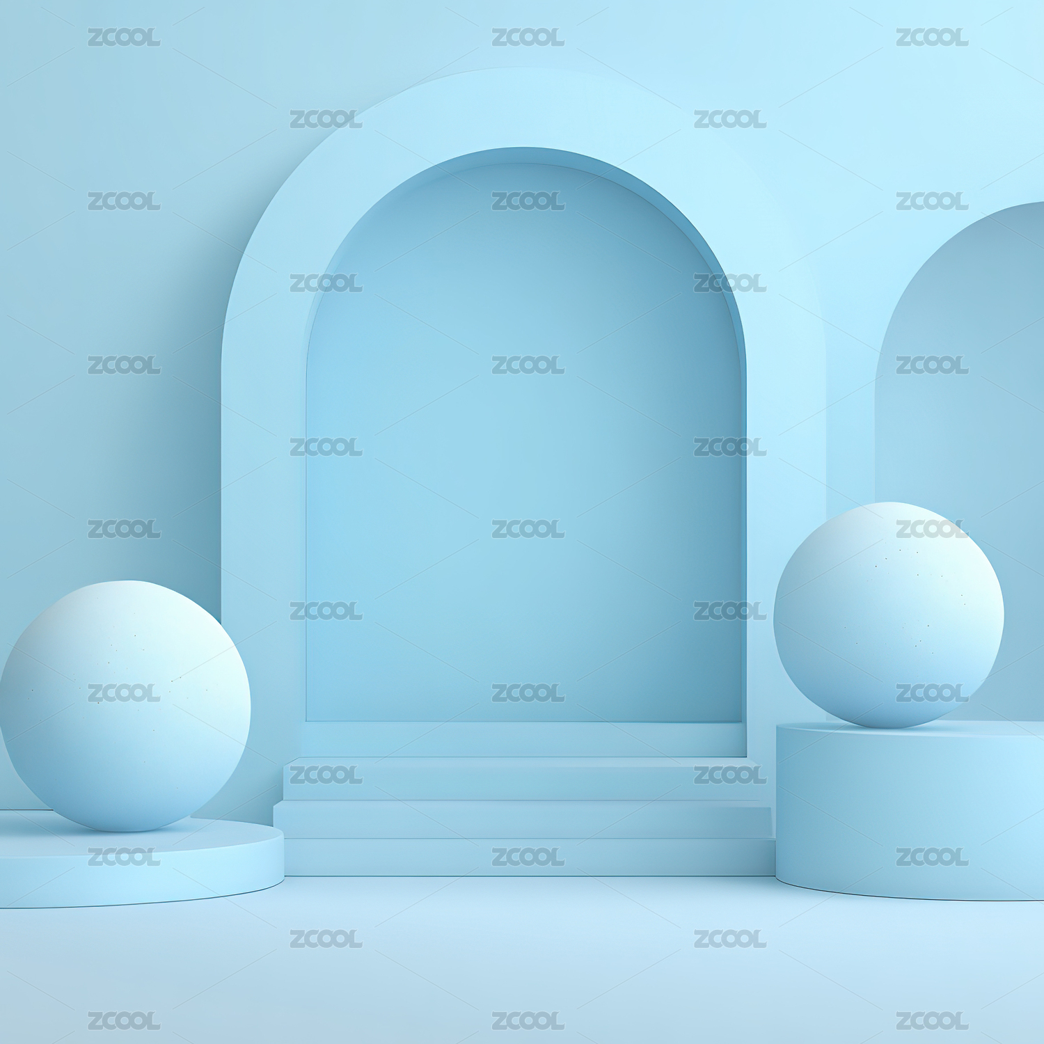 蓝色拱门与球体的简约场景