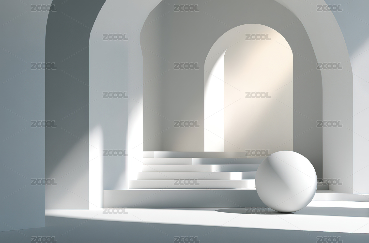白色拱门与球体的光影空间