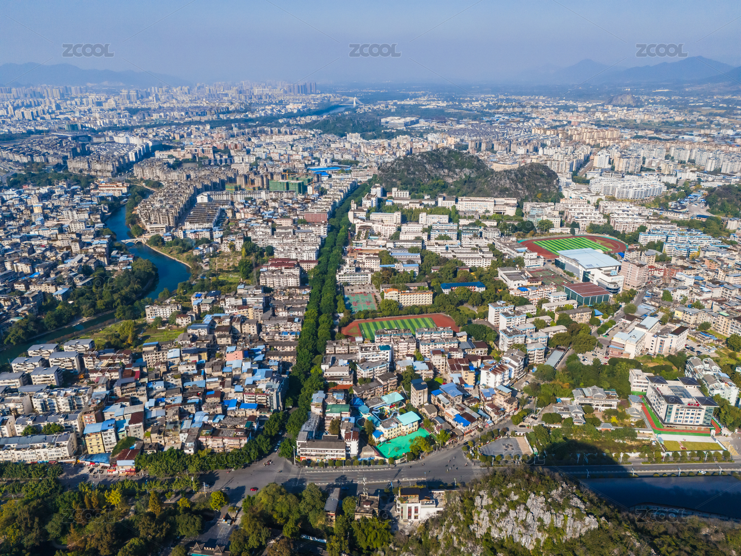冬季,晴朗,竖屏,桂林,城市风光,航拍,冬天,城市建筑,广西