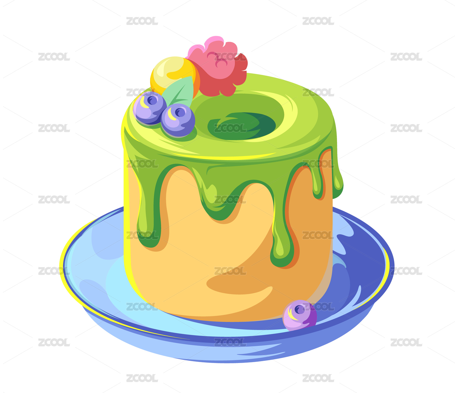 小蛋糕光影艳丽色彩食物潮流矢量插画
