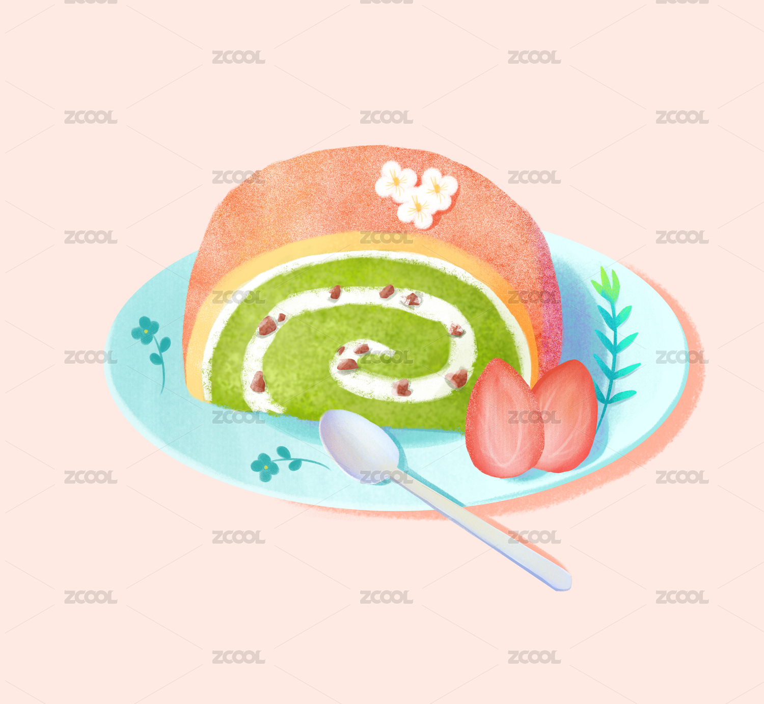 手绘噪点风、肌理风清新甜品盘装小蛋糕插画