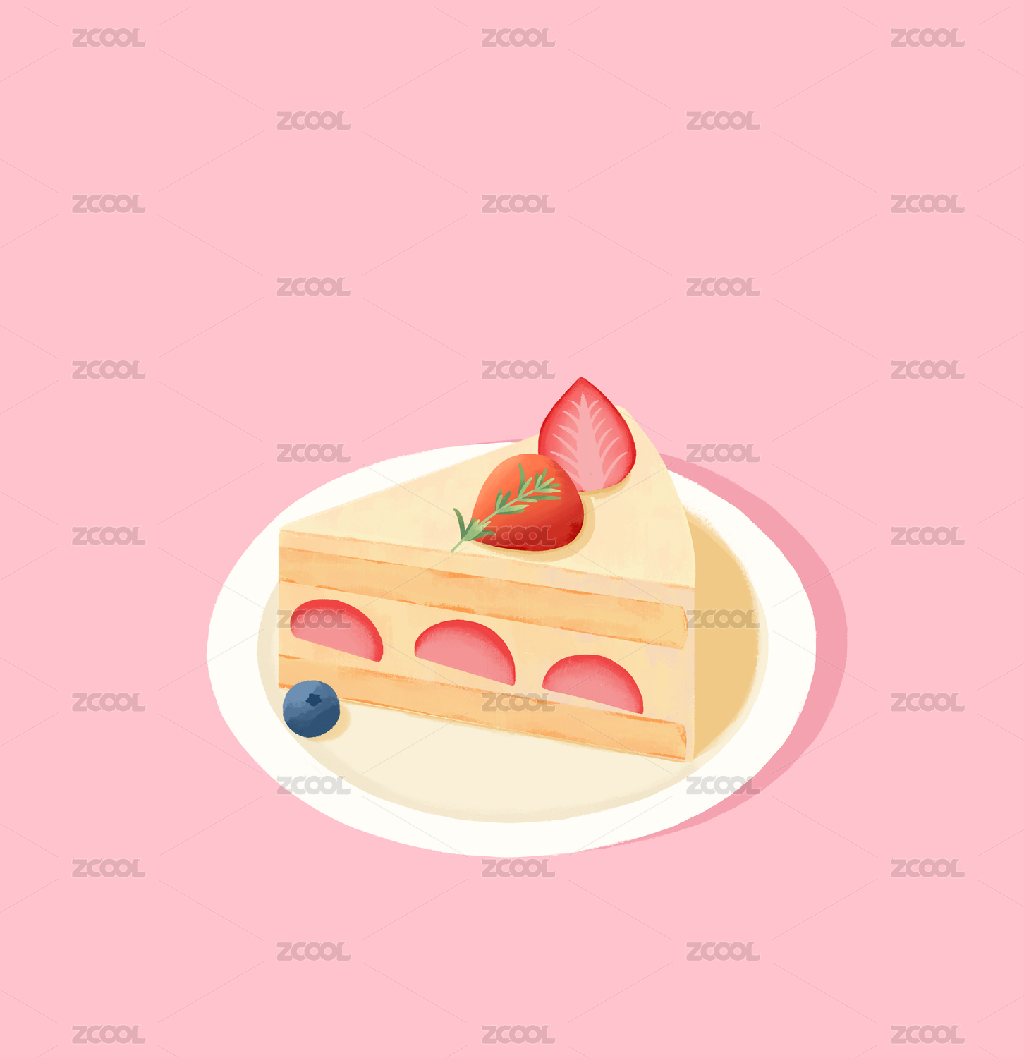 清新,蛋糕,食品,饮食,浆果,草莓,甜食,烘焙,美味,手绘