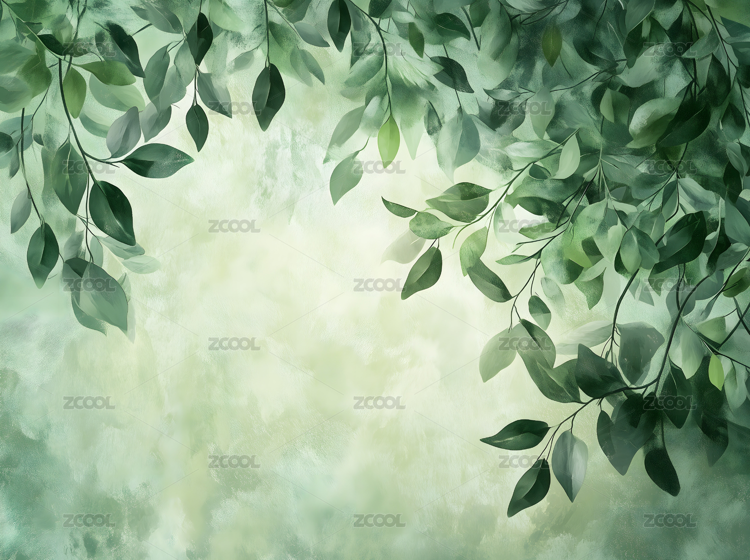 水彩绿叶背景图