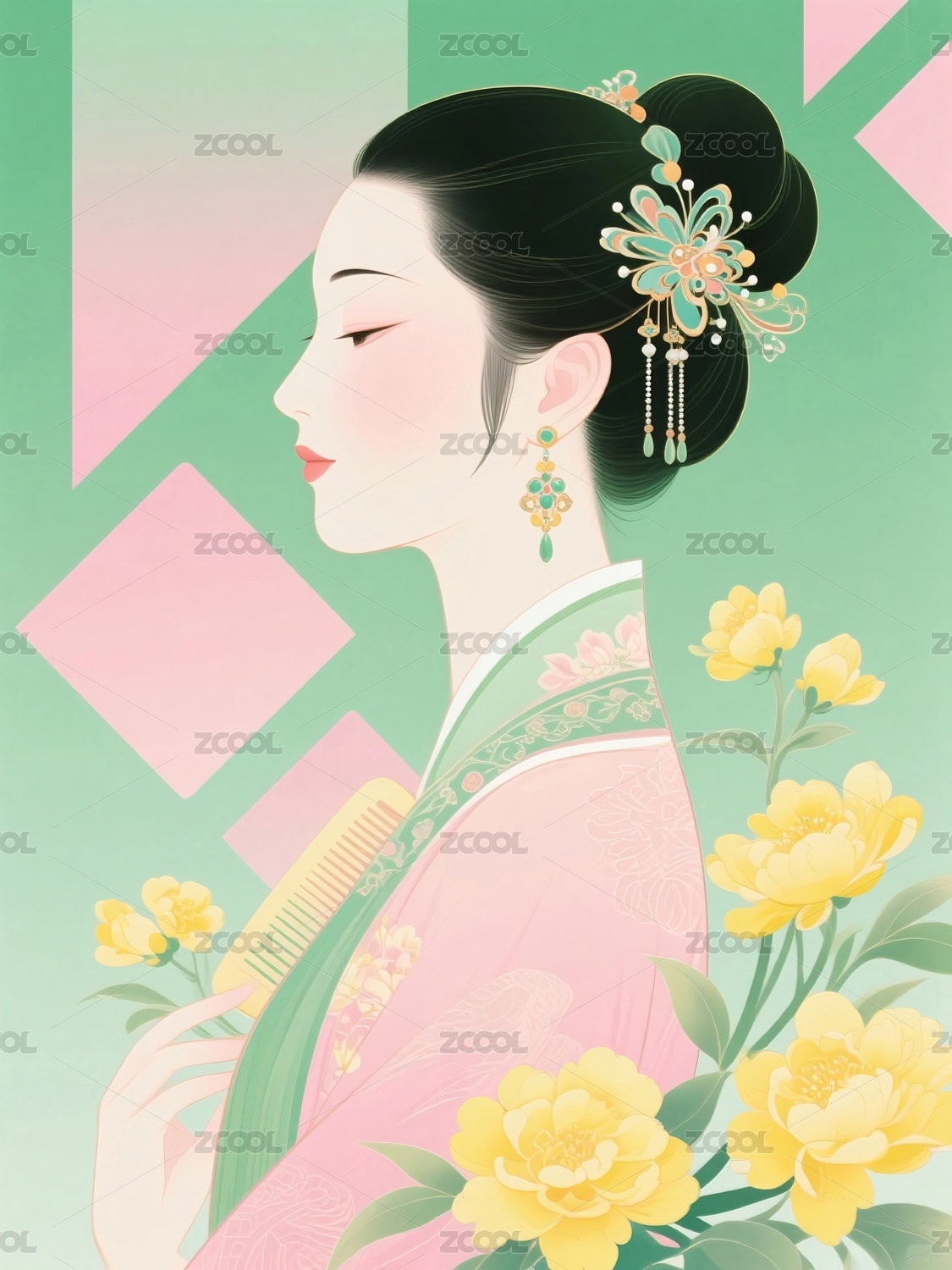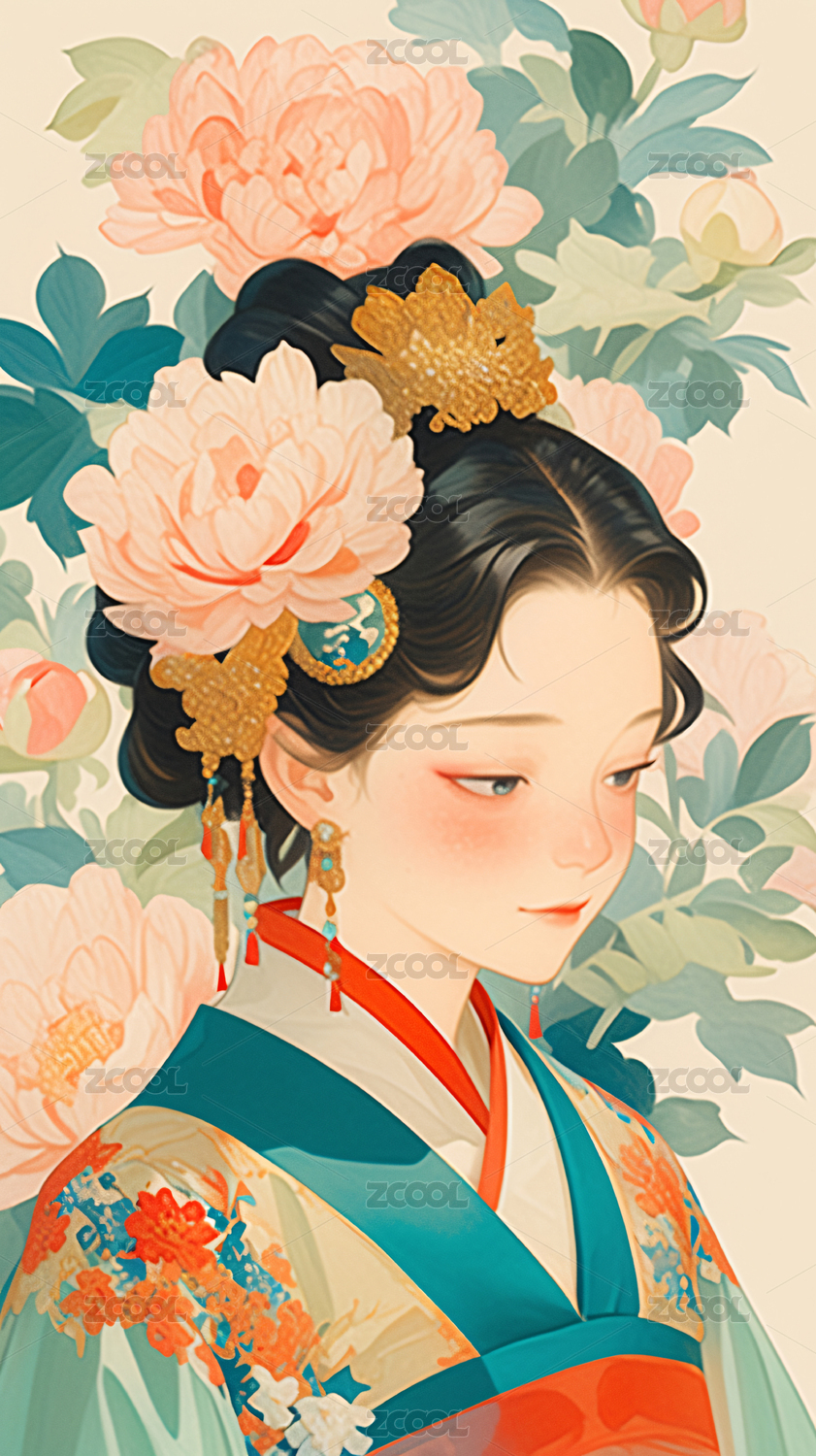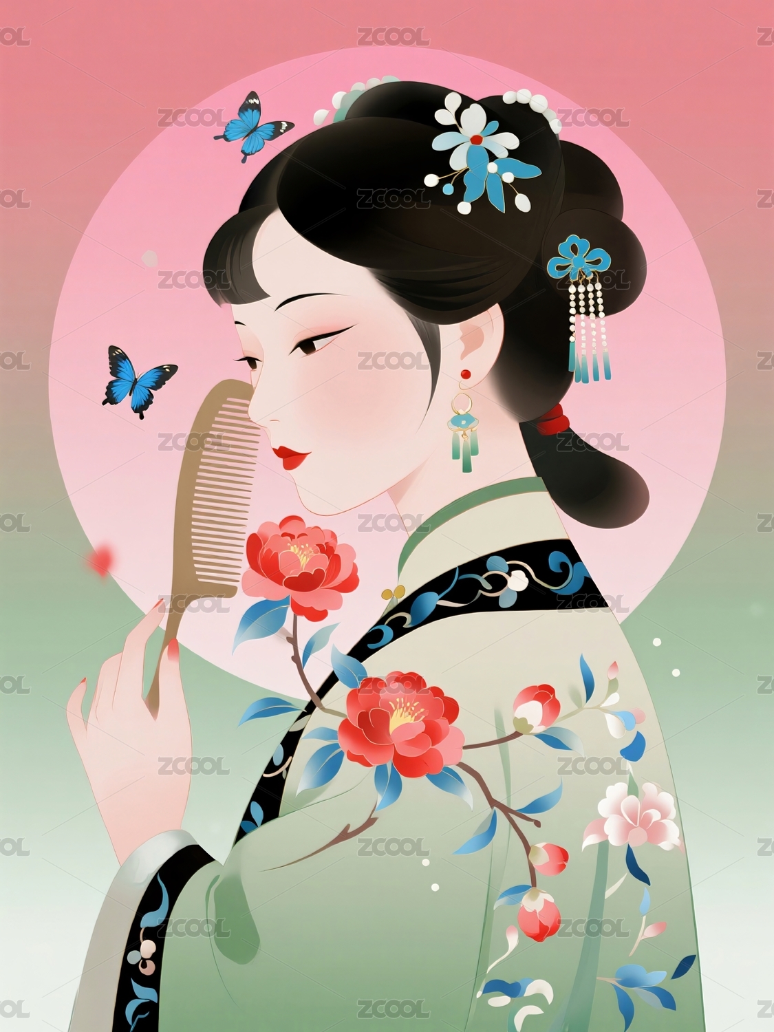 工笔画,中国画,古风,中国风,美女,审美,国画,仕女图,仕女,意境