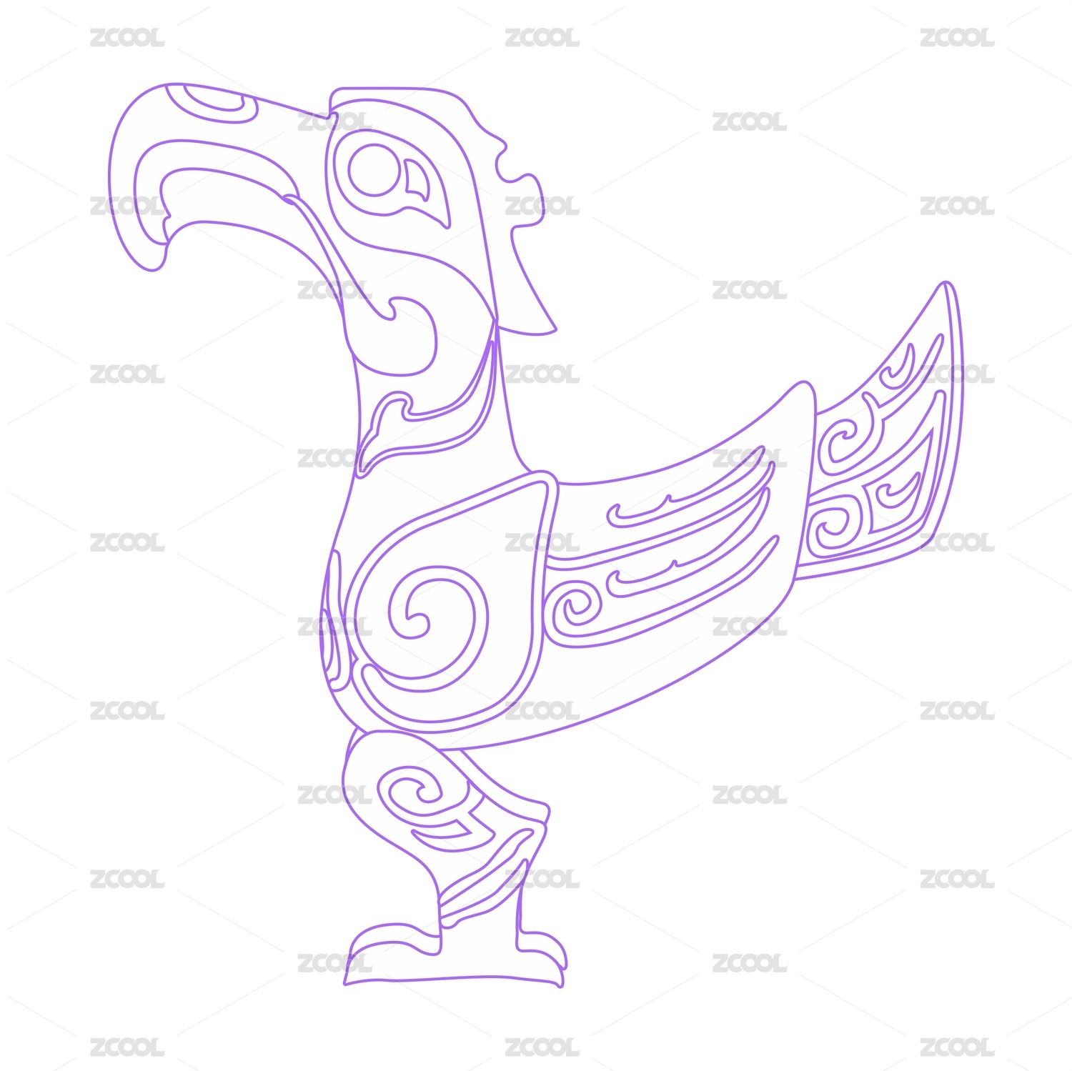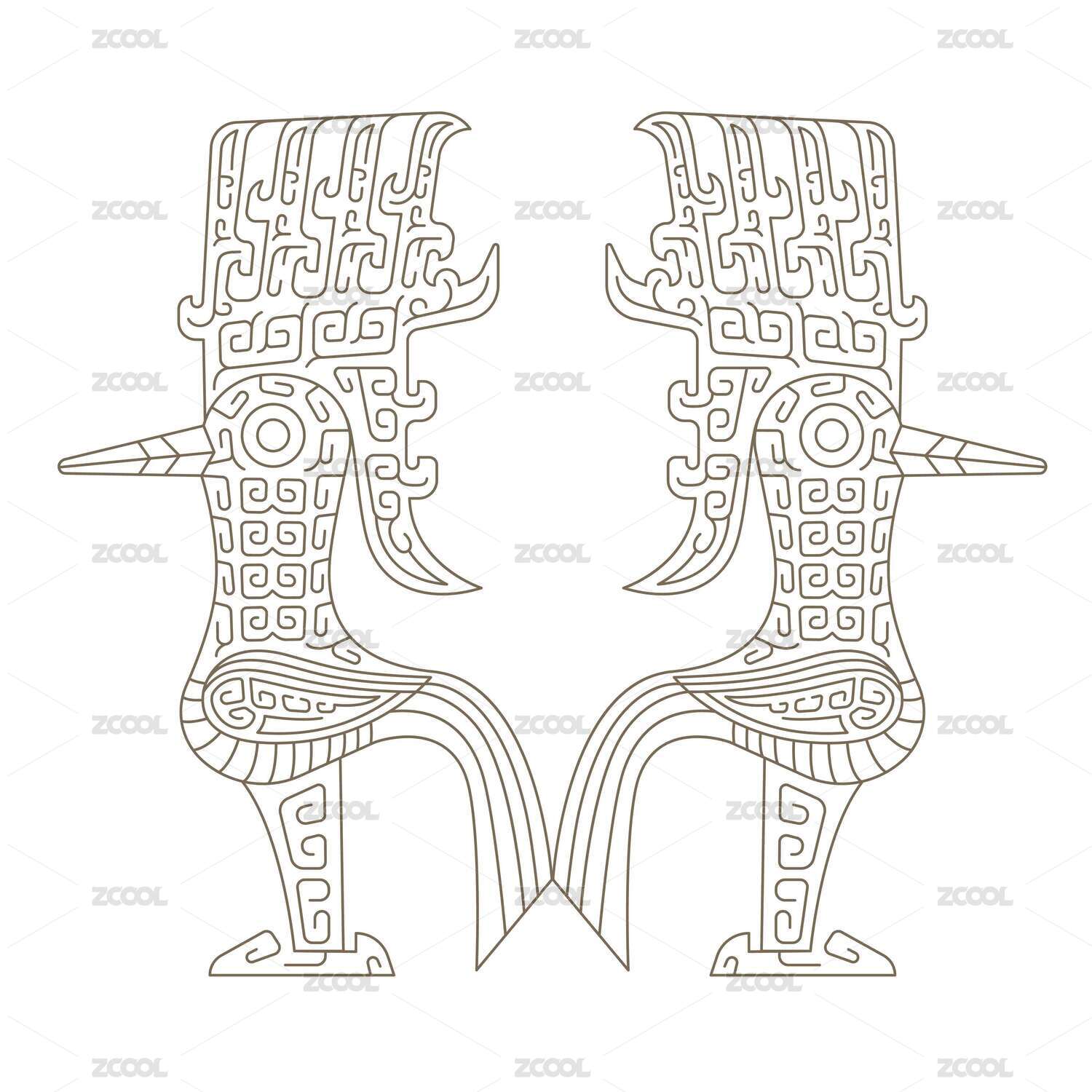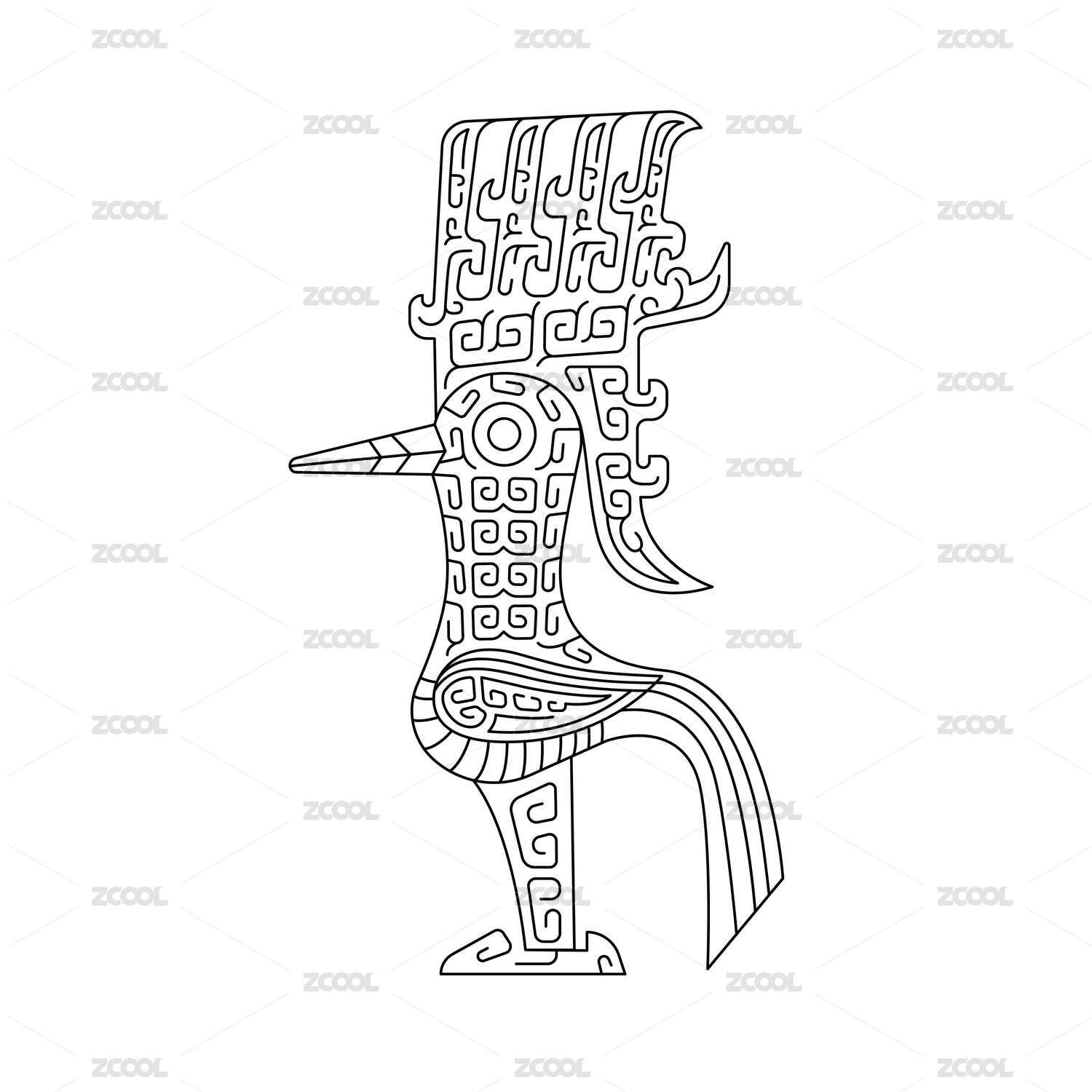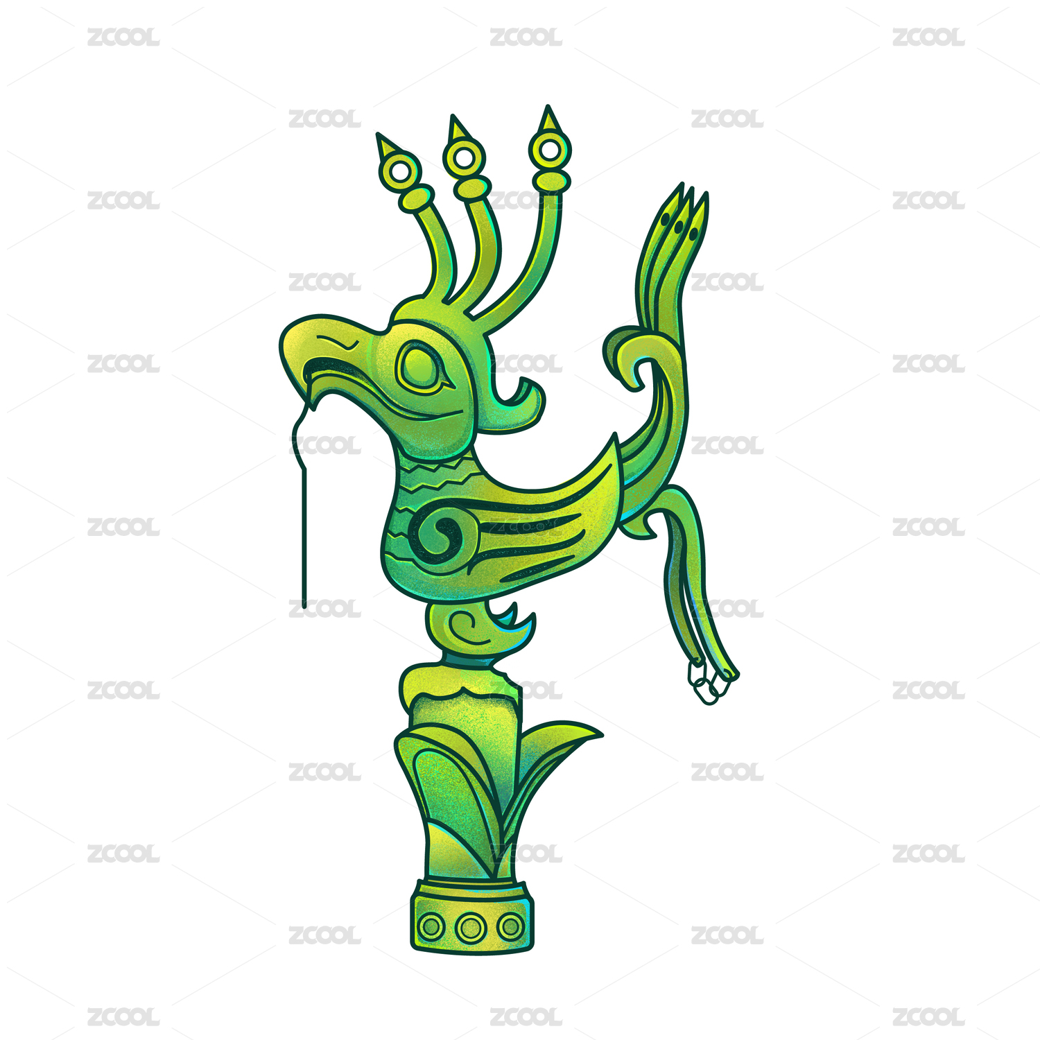 三星堆青铜神树枝头花蕾及铜鸟线描