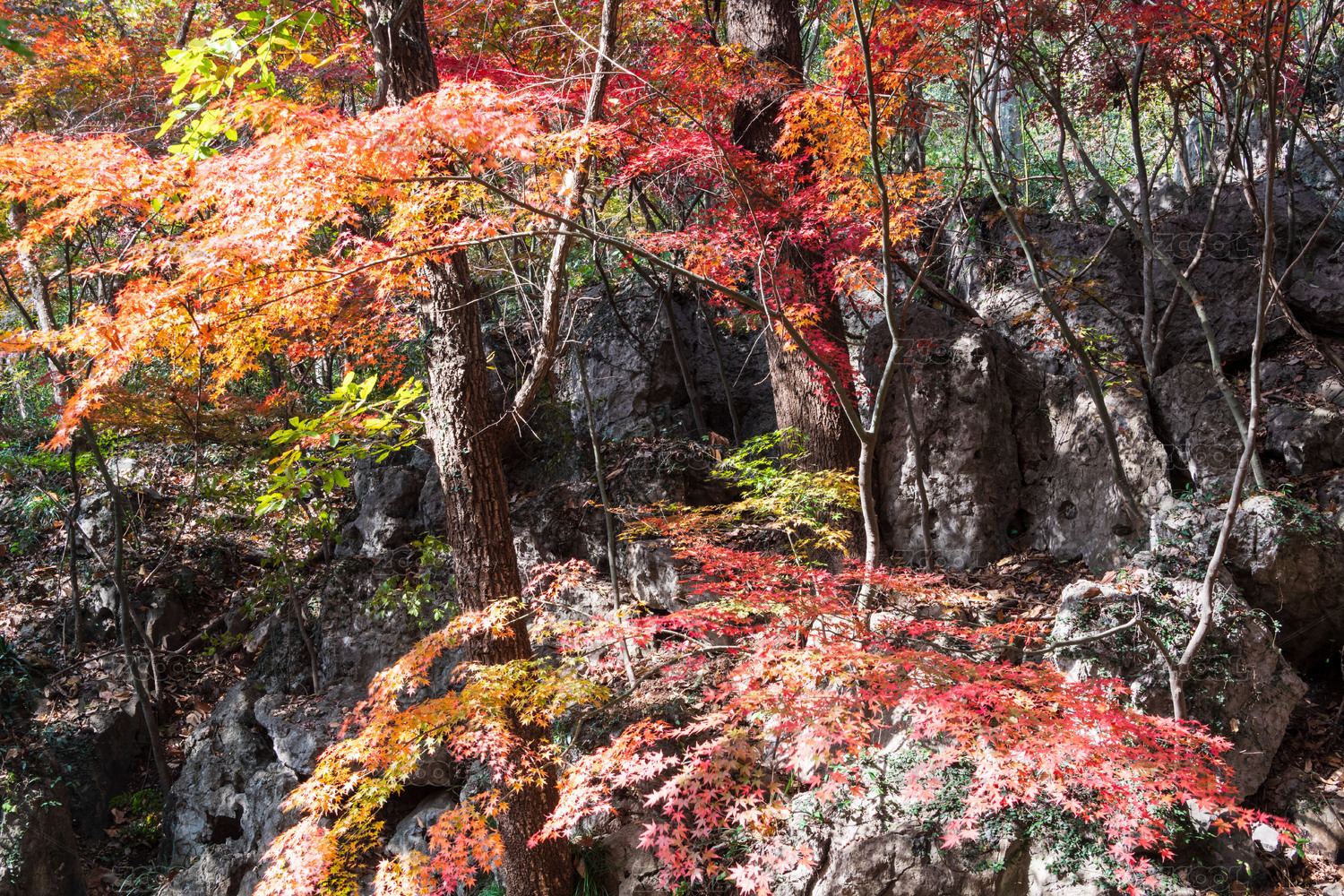 中国辽宁本溪老边沟十月国庆枫叶风光