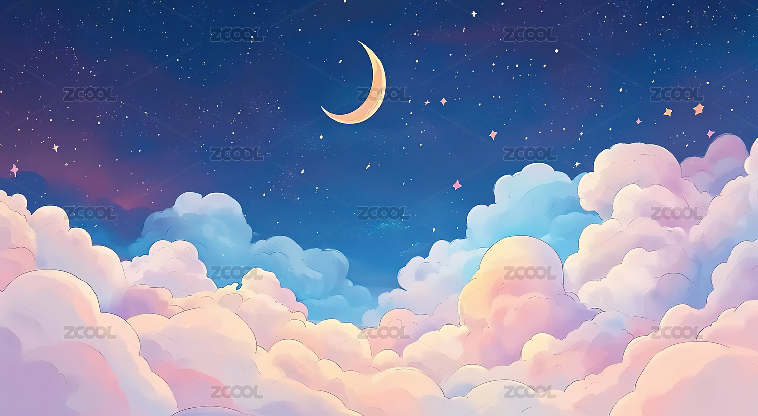 梦幻星空下的云海与弯月