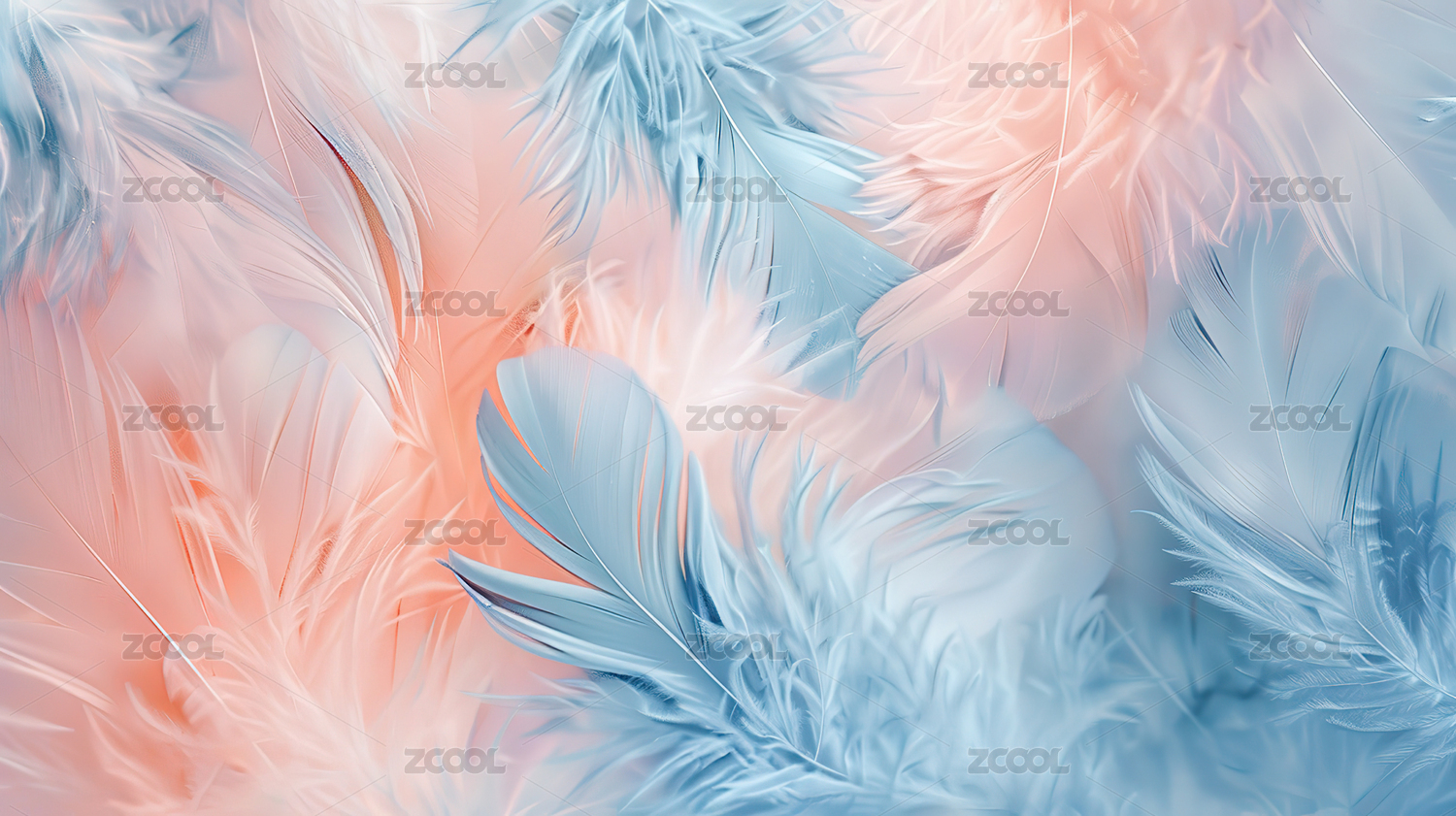 粉蓝羽毛与梦幻背景