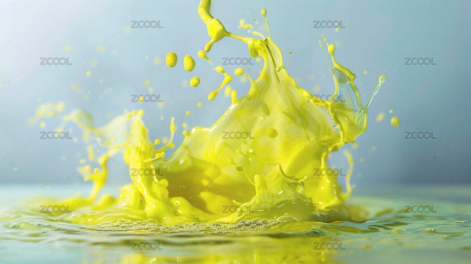灰色背景上牛奶飞溅 形成动态水花与水滴
