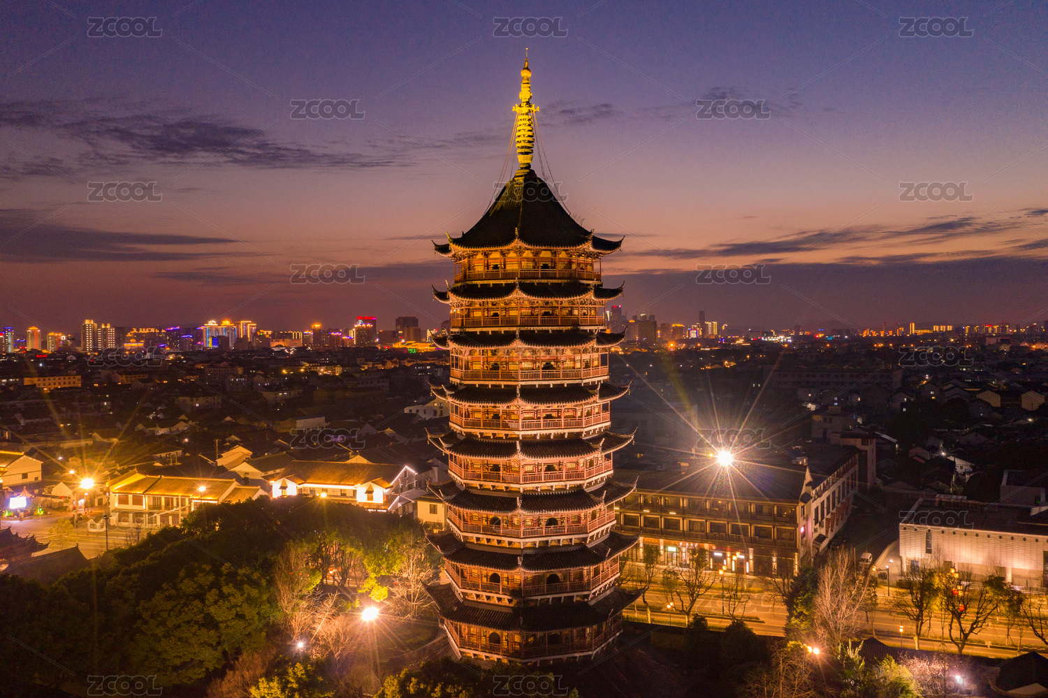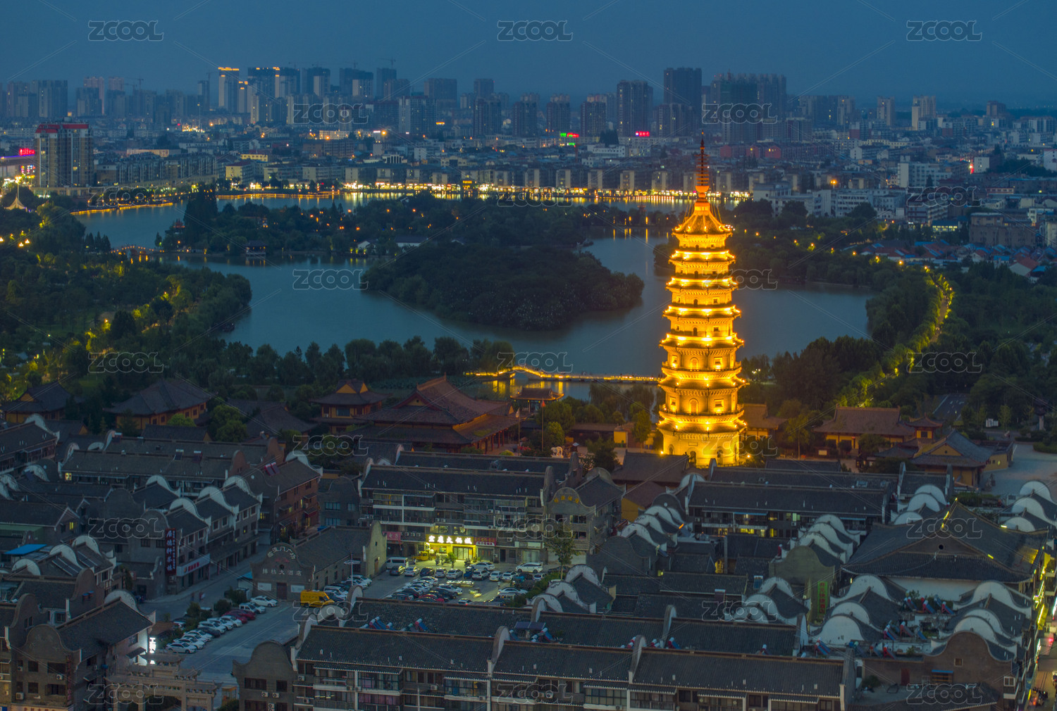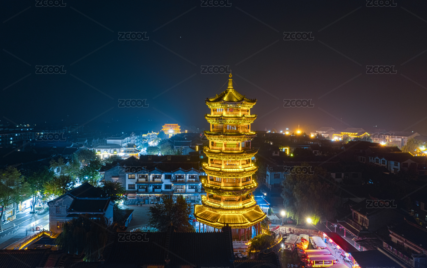 江苏淮安市里运河历史长廊国师塔航拍夜景