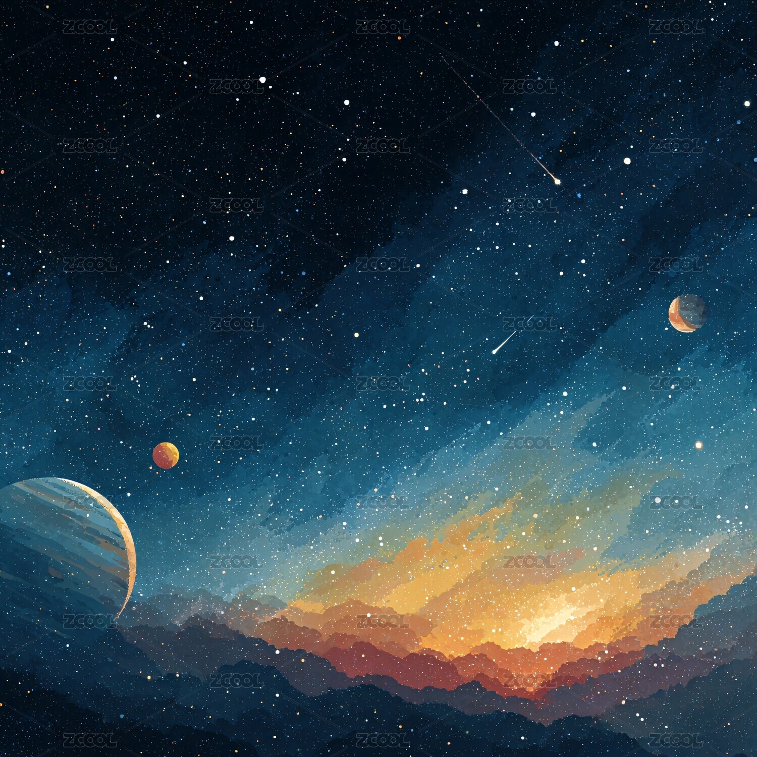 治愈系唯美星空插画背景