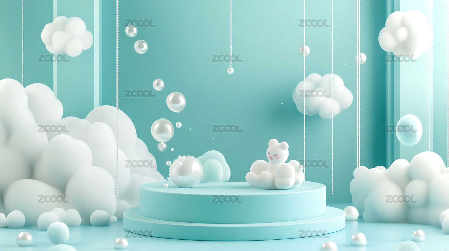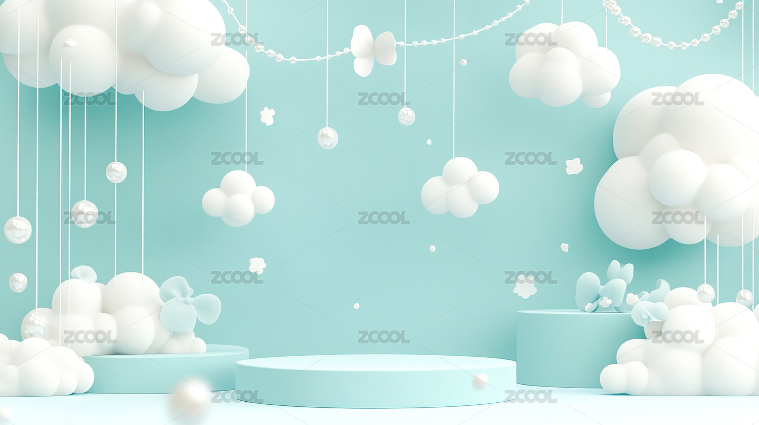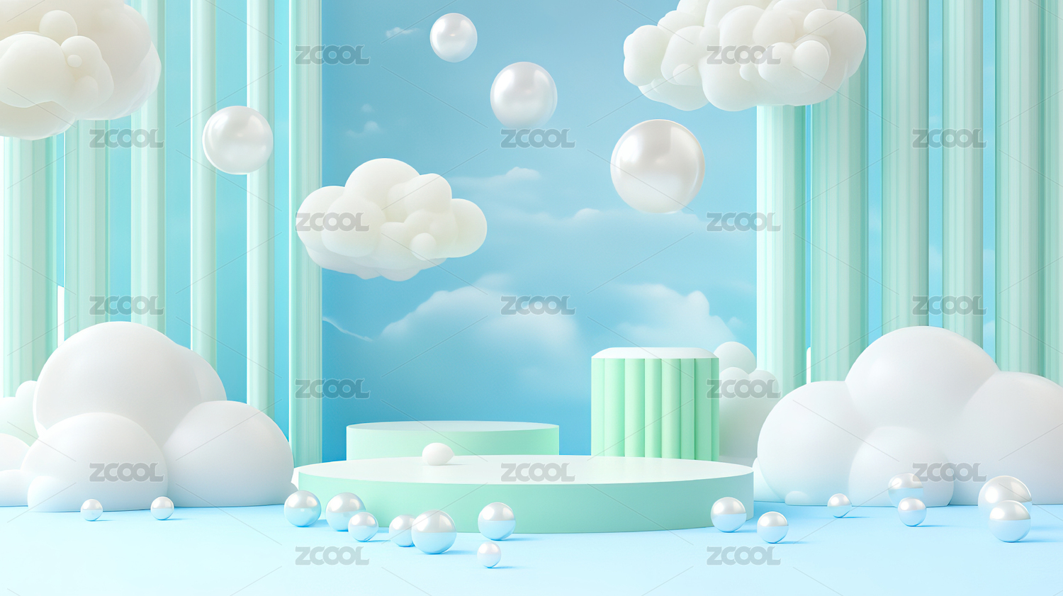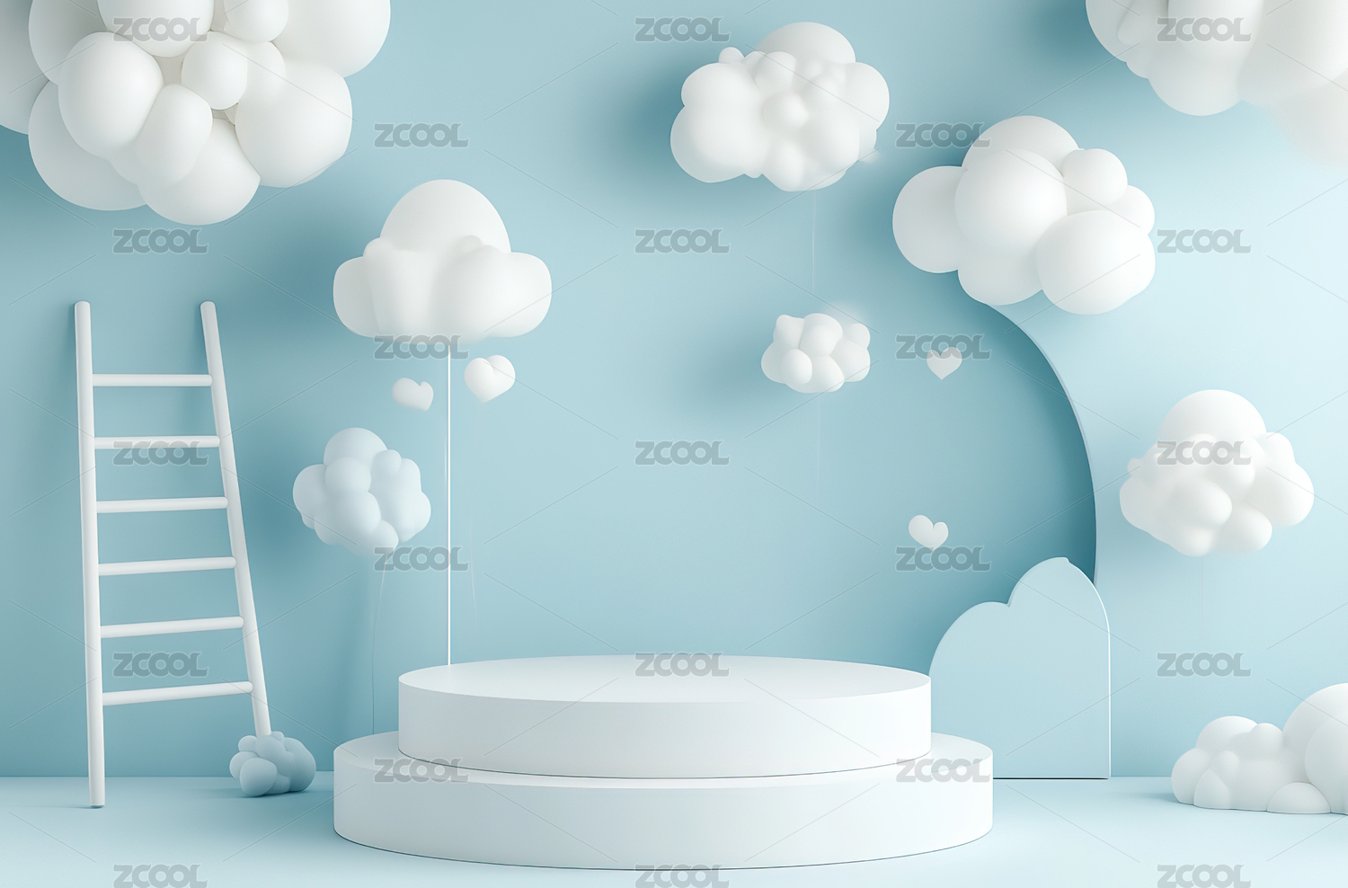 蓝色圆形舞台与白云装饰的梦幻场景