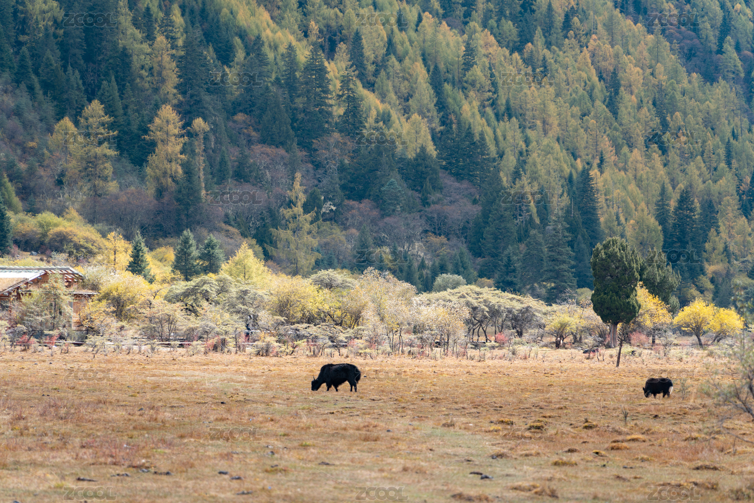 中国,西藏,大峡谷,秋天,秋色,农田,牛,田园,森林,树林