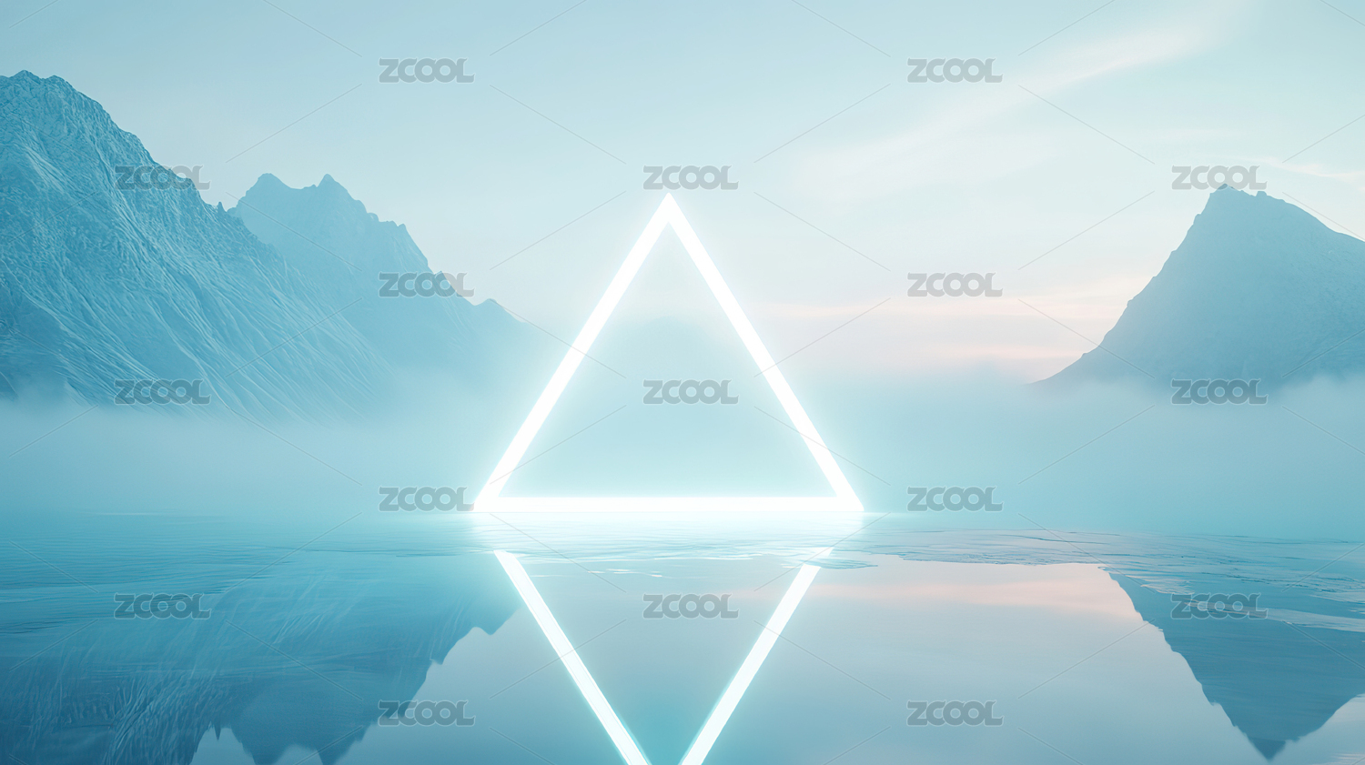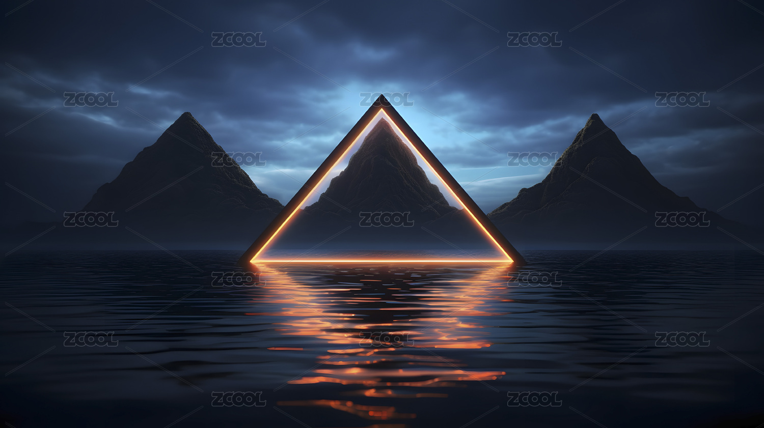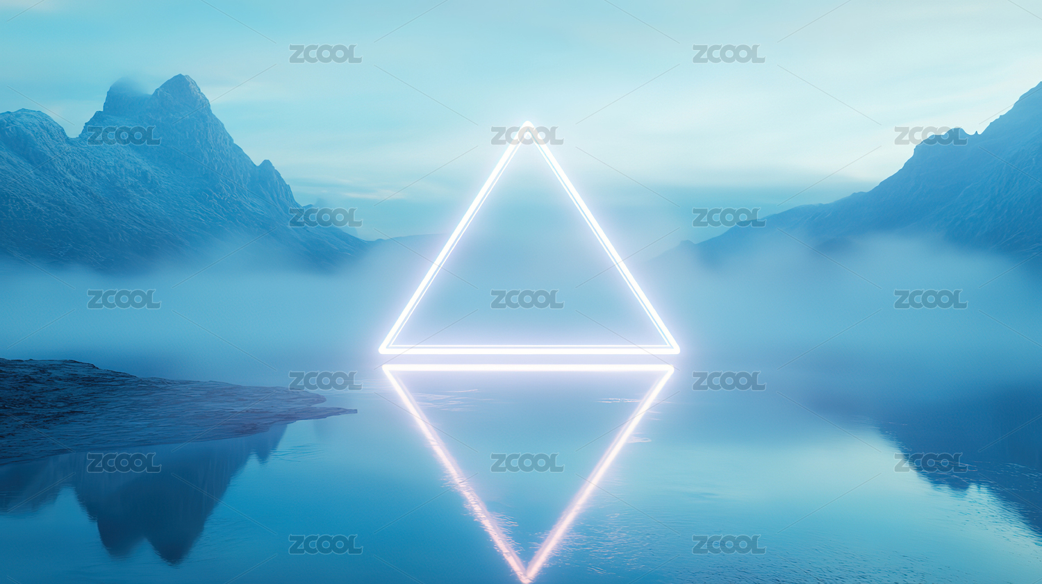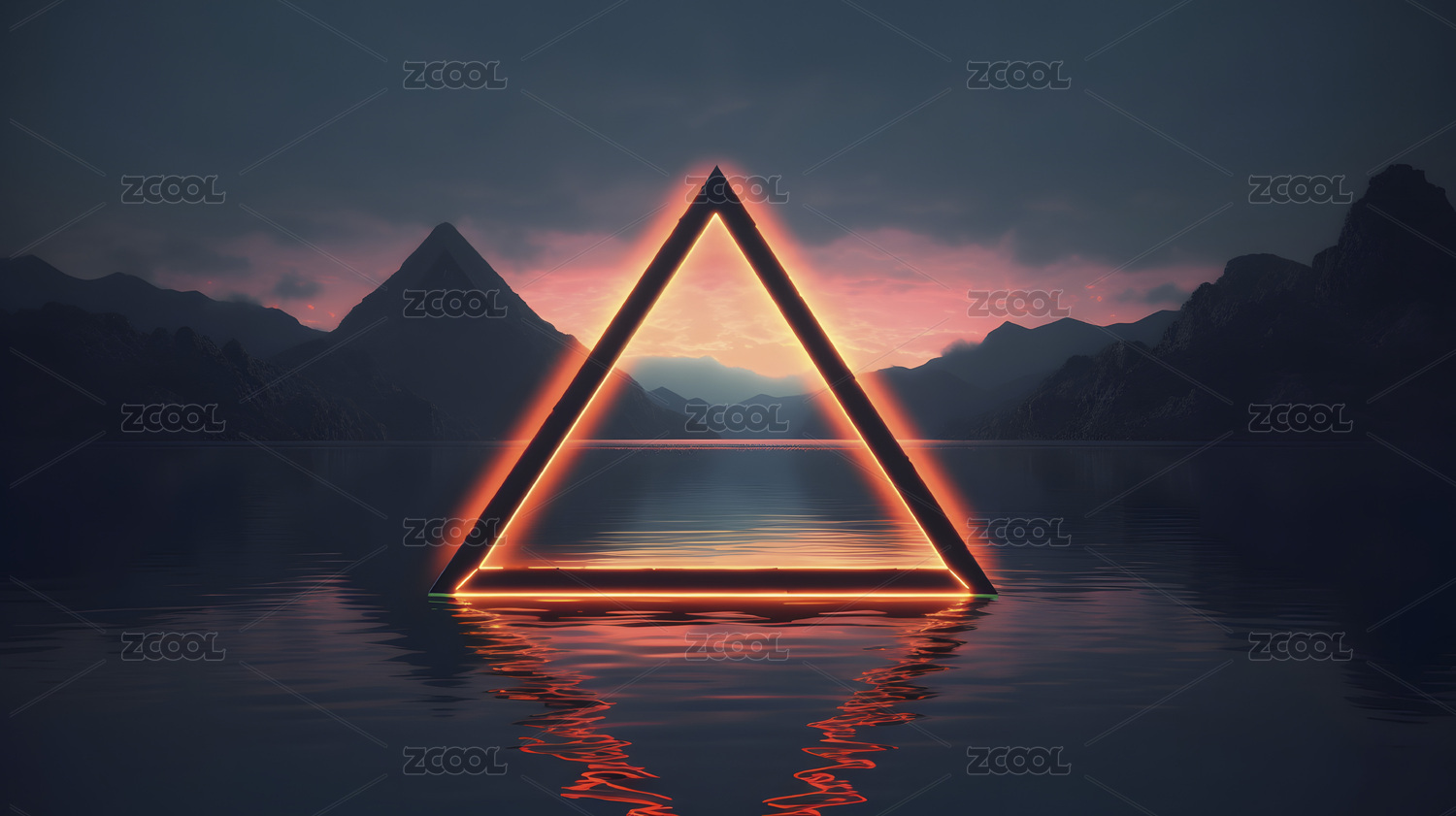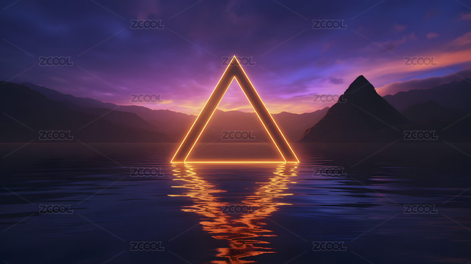 数码科技海边霓虹三角形框架抽象海报背景