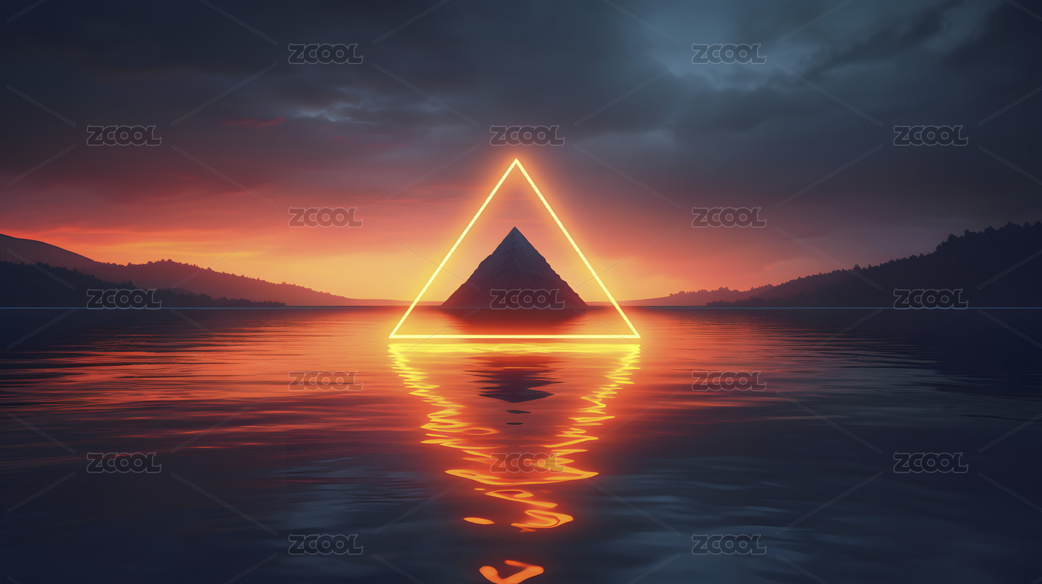 湖泊中的发光三角形