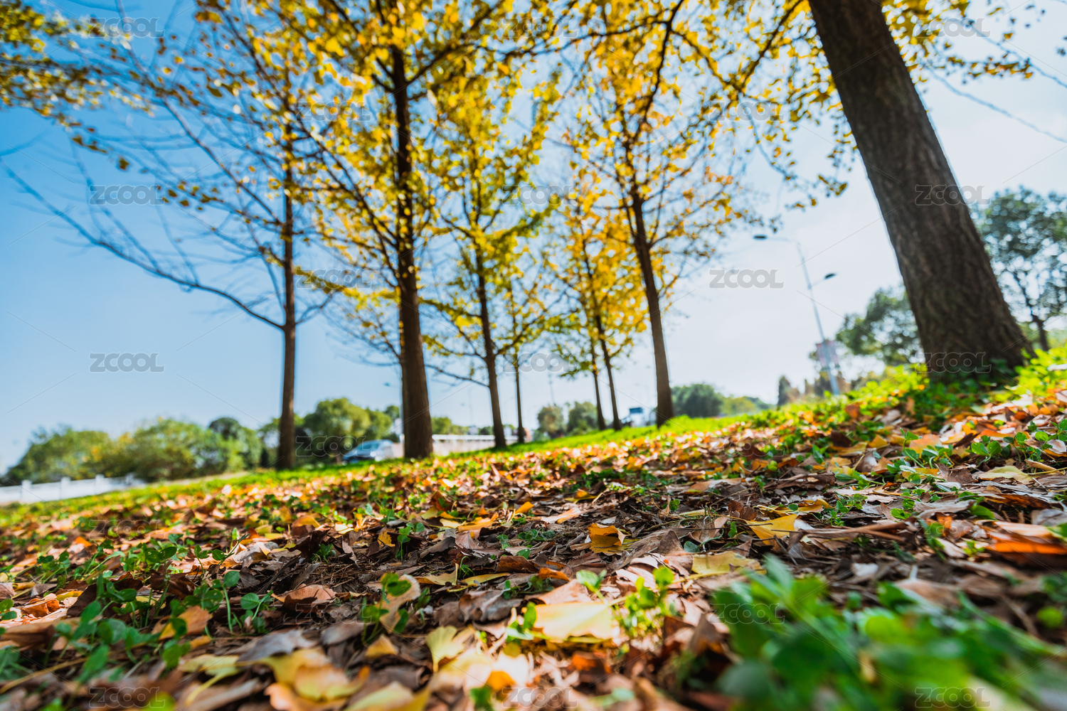 秋天中国安徽省蚌埠市张公山公园景区里的色木槭树和枫叶落叶