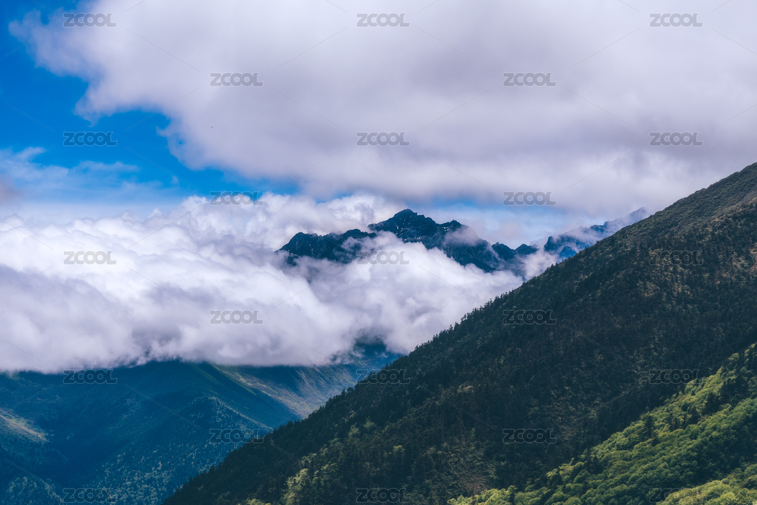 四川九寨沟雪山和原始森林
