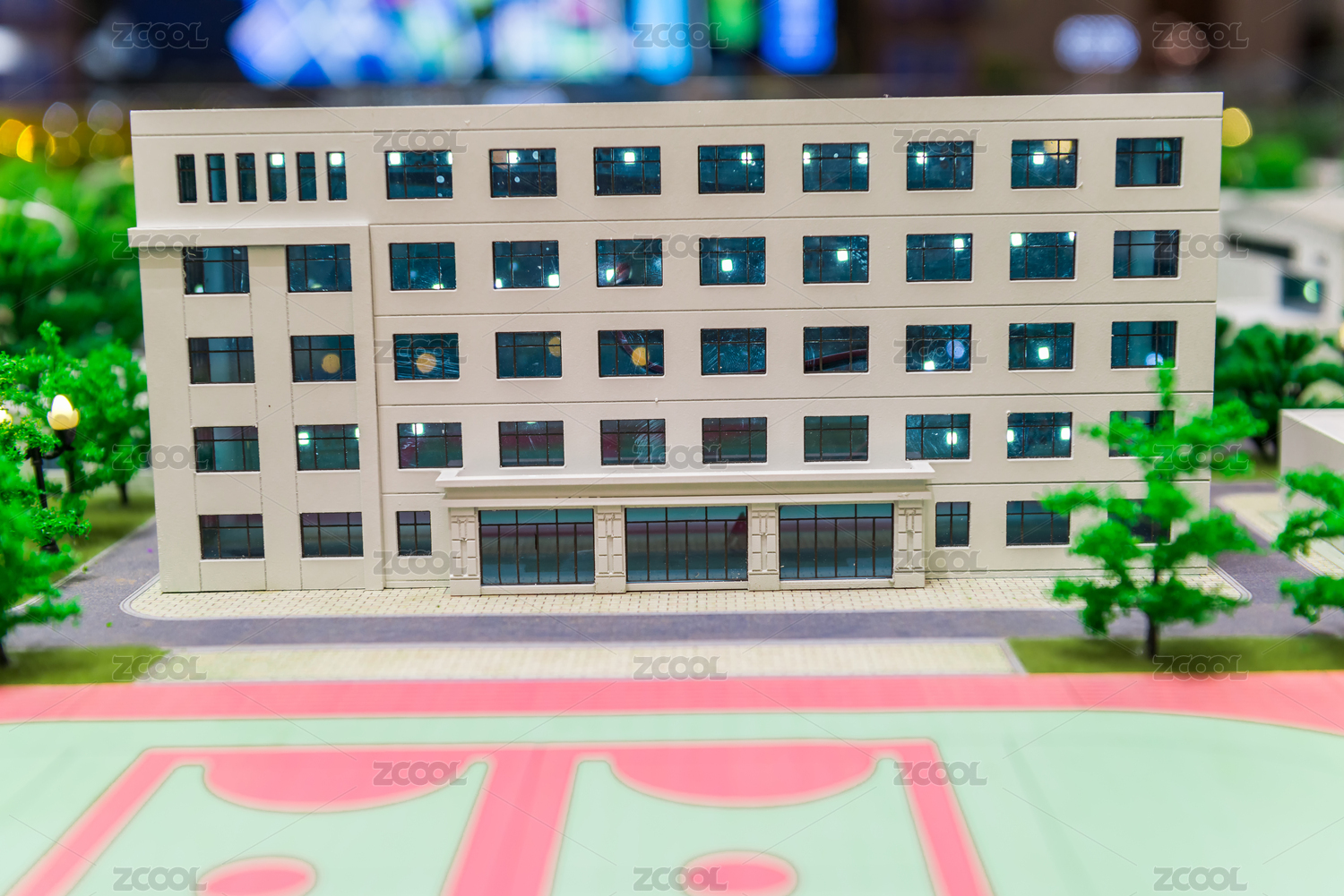 房地产售楼处建筑模型沙盘中高层住宅小区规划场景局部特写