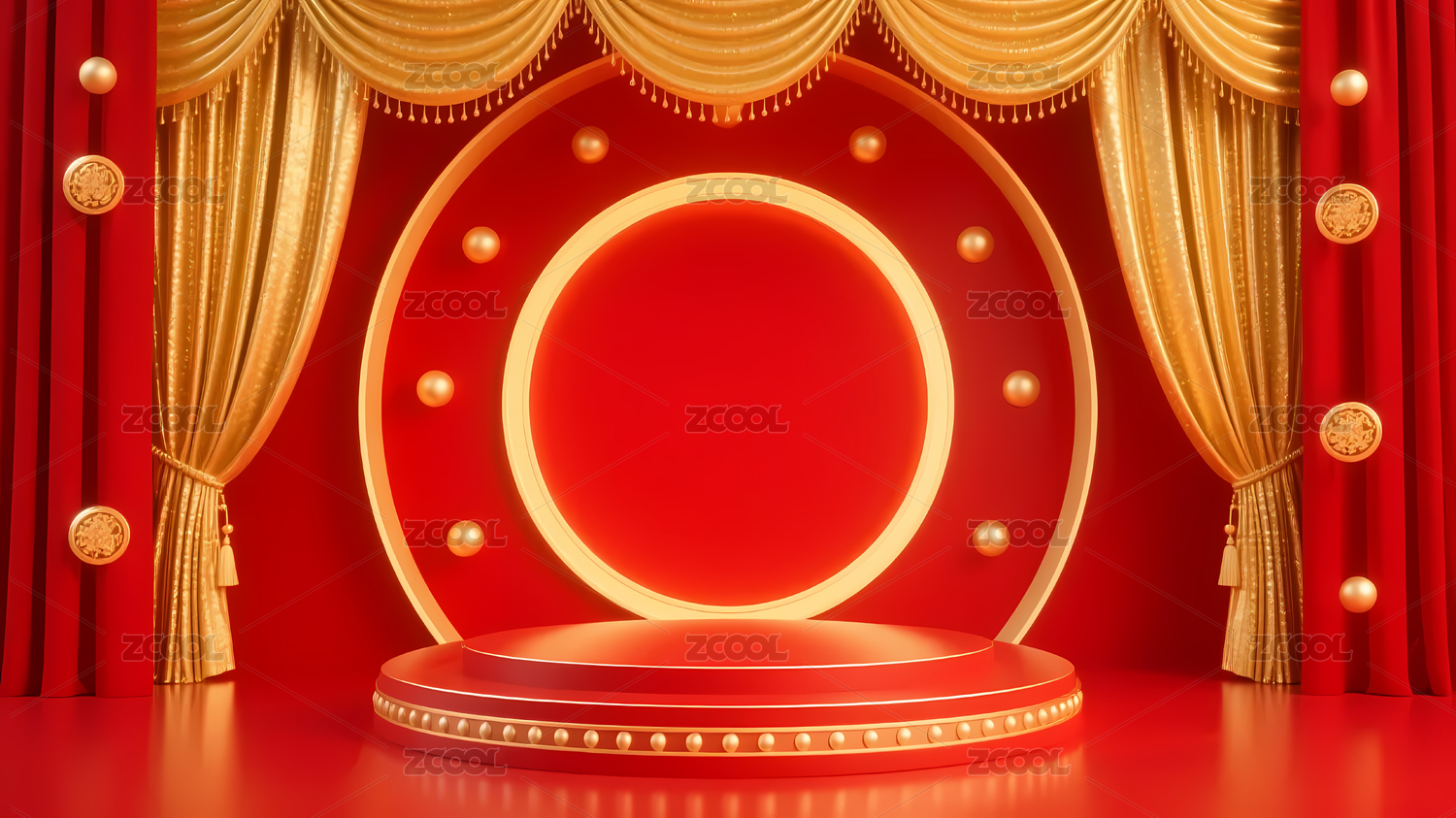红色,舞台,三维图形,人造空间,背景,典礼,插画,装饰,展览,抽象