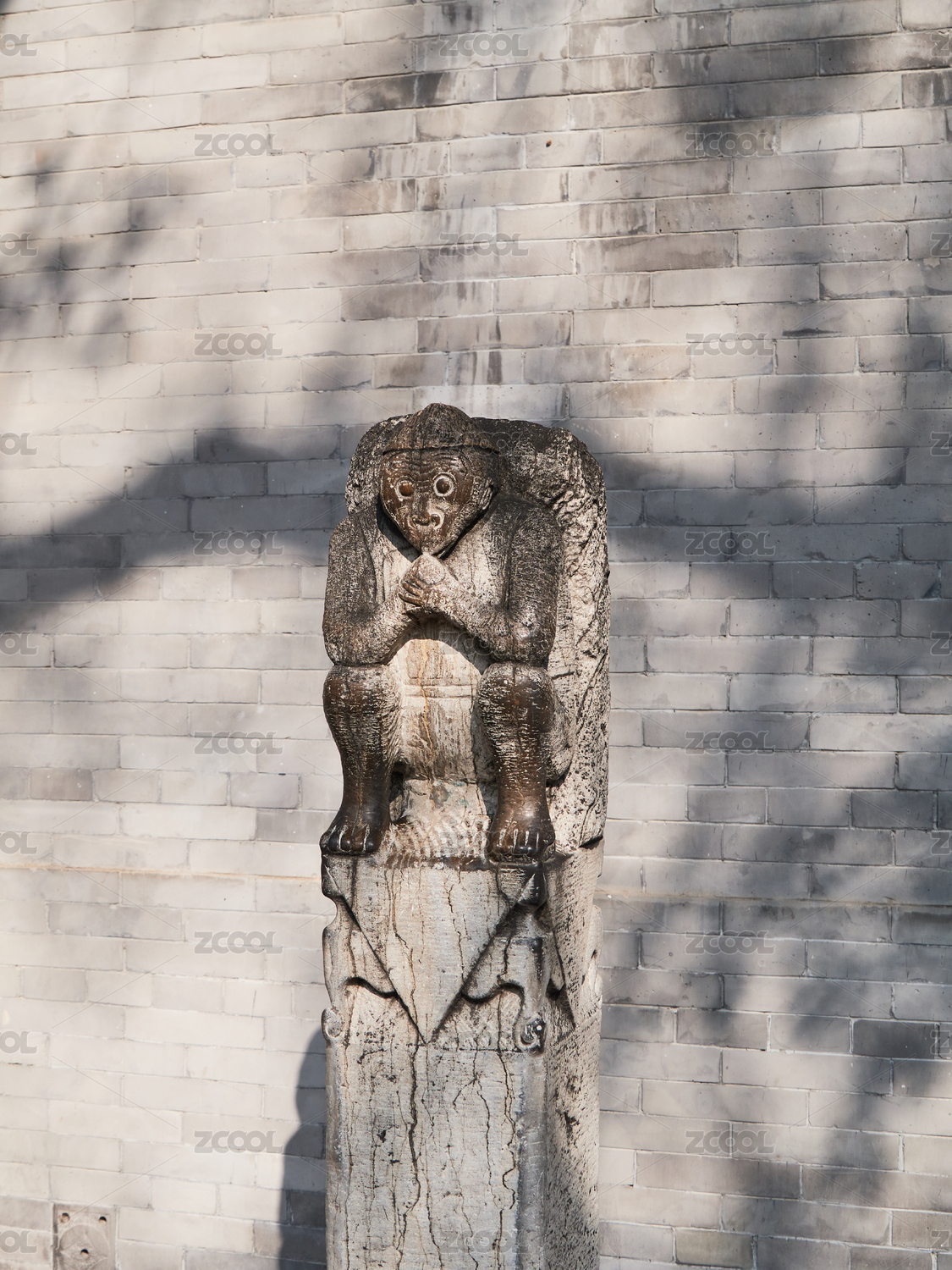 北京丰台区宛平县衙外猴形石雕拴马桩特写