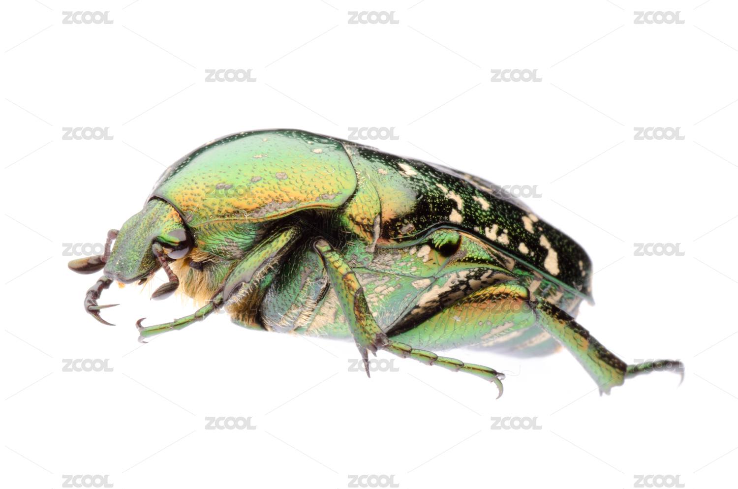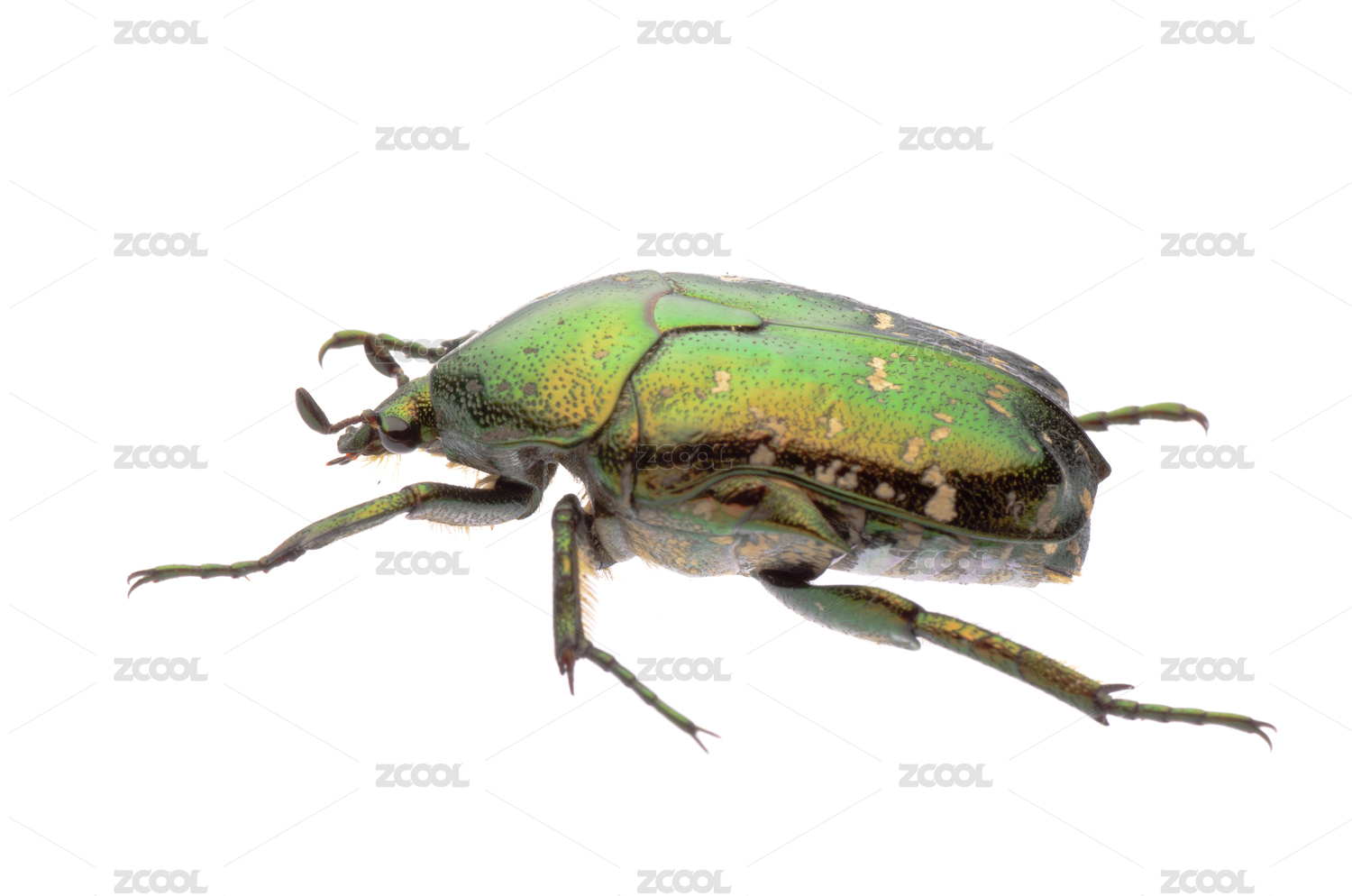 青蚨虫上涨隔绝在白色背景金龟子(金花金龟)