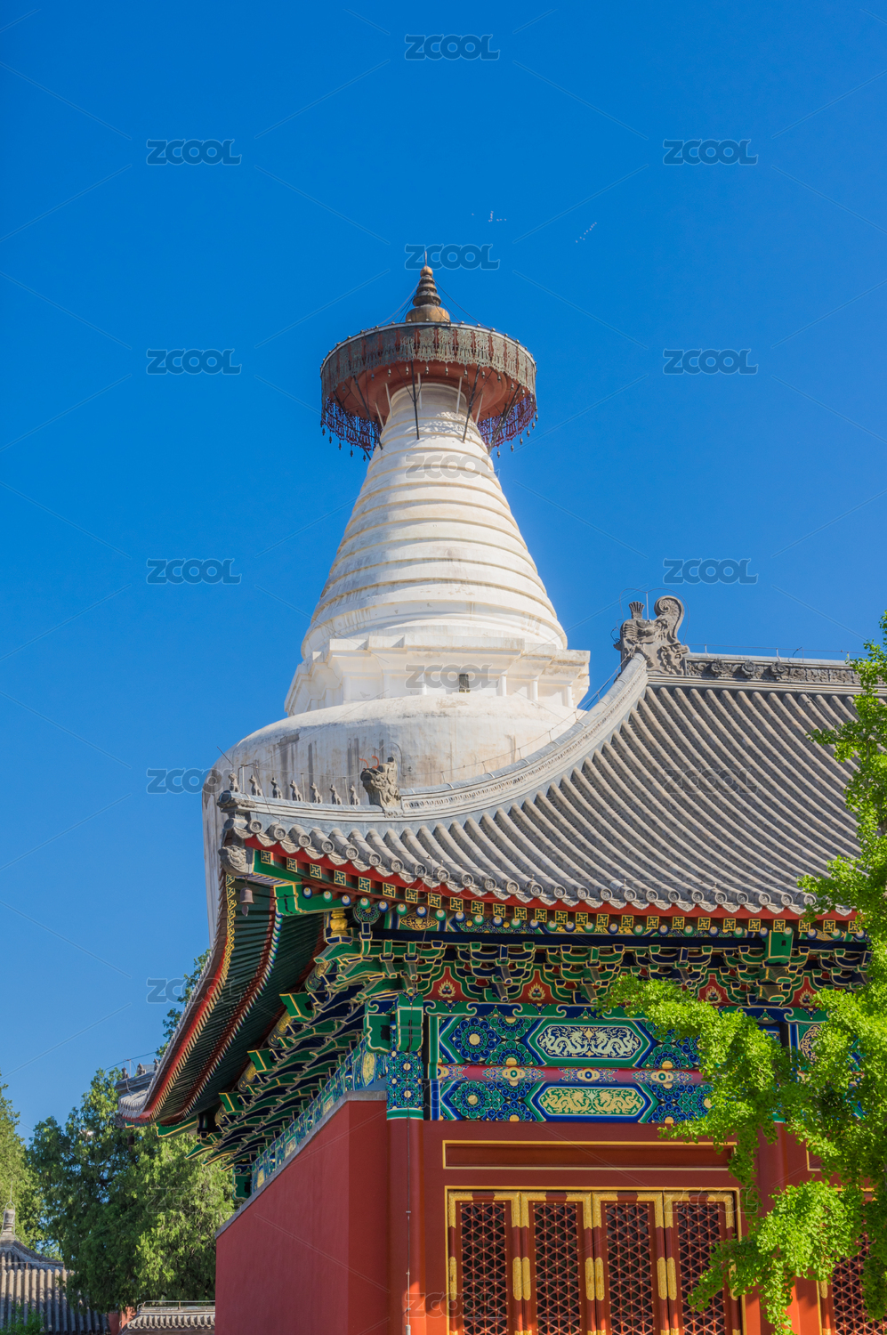 春季晴天北京妙应白塔寺古代建筑风光