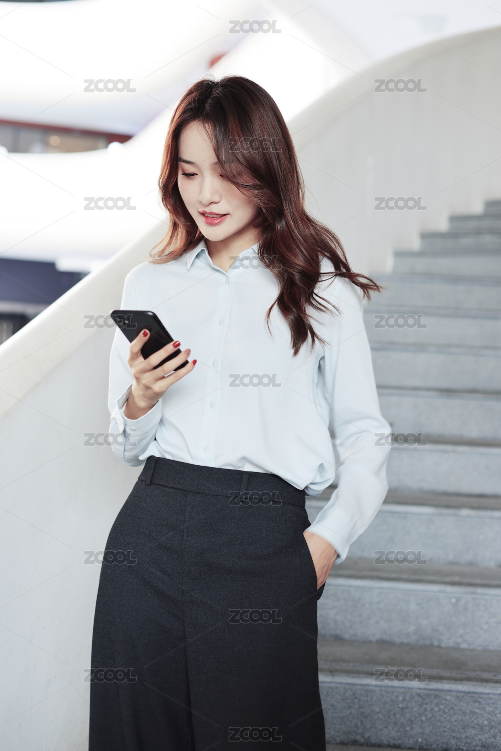 在商业区使用手机的商务女生