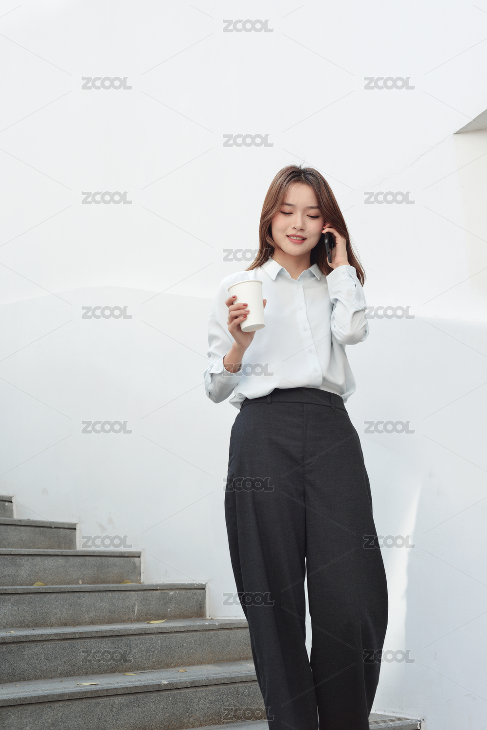 一东方商务发女性在用手机打电话
